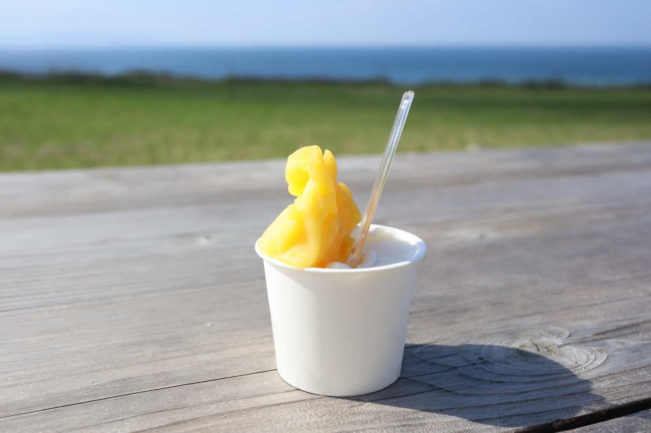 場所的に車でないと行くのは難しいです。レンタカーでしたが一度道を間違えてしまいました。ここはジェラートのお店で駐車場は余裕でありました。へんぴな場所にも関わらず、結構お客さんが多かったことにビックリ。この日はマンゴーとバニラのミックスにしましたが濃厚な味でおいしかったです。小高い丘の上にあるため、晴れた日に、眼下に広がる海原を見ながらベンチでまったり冷たいジェラートは良いと思います。