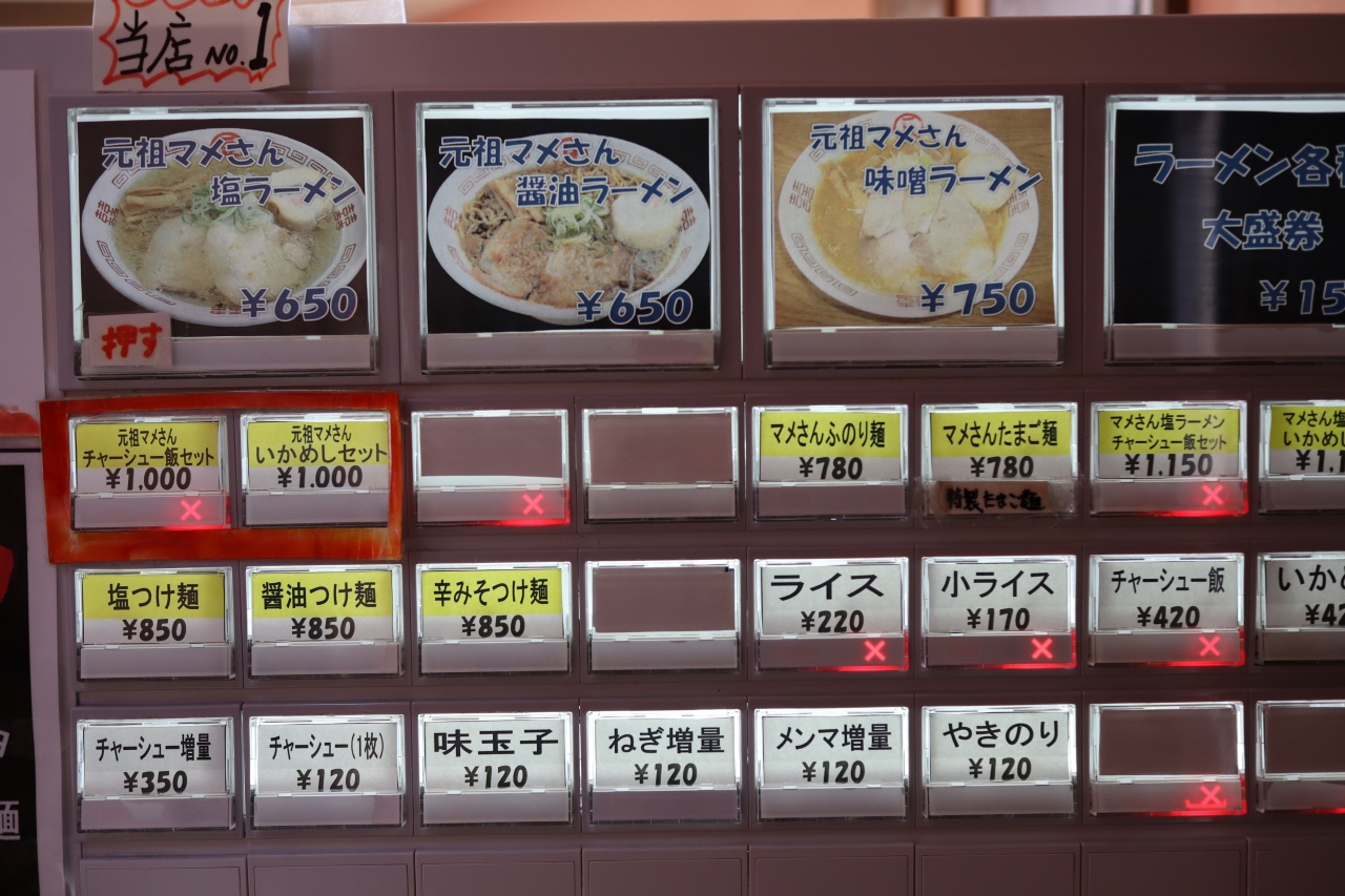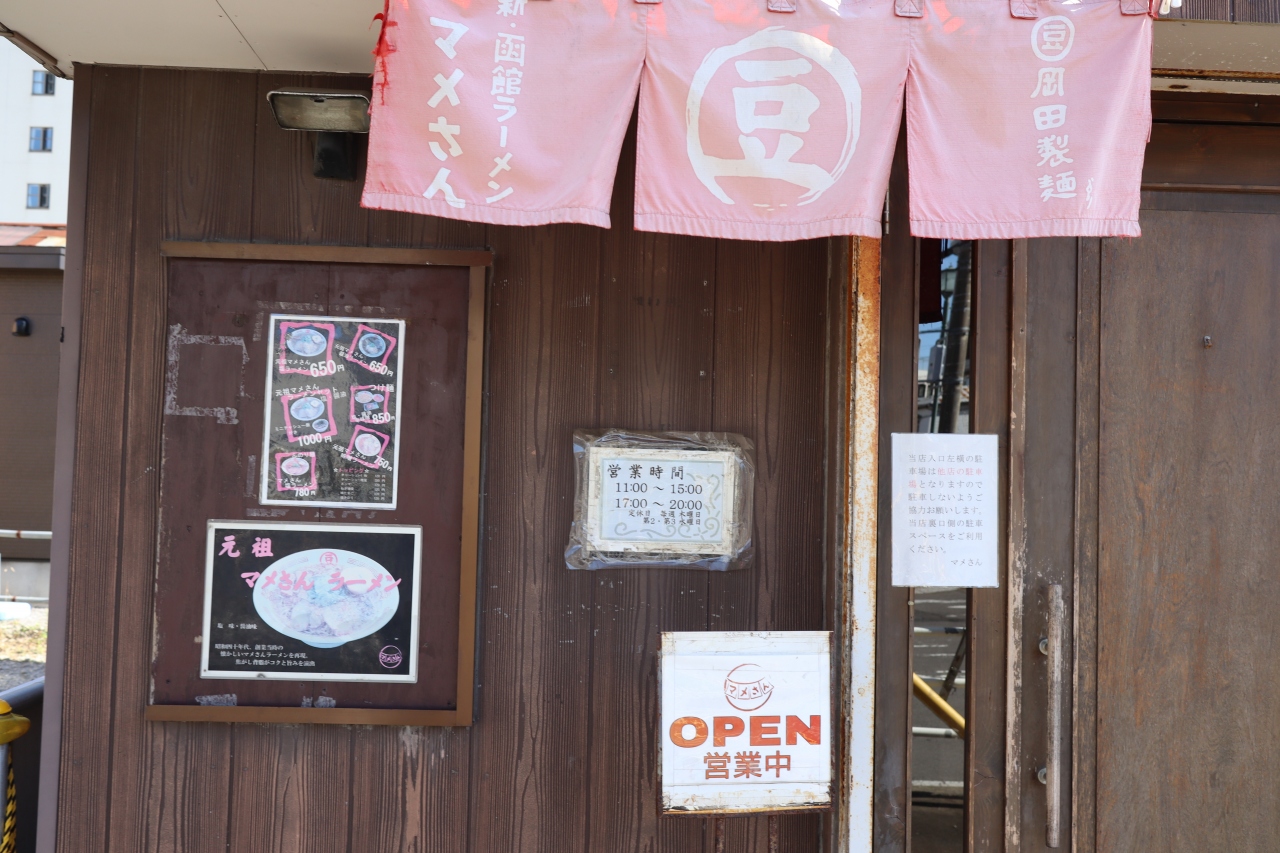函館市電の谷地頭方面、十字街から宝来町の方面に歩いていくと道路沿い左側にお店があります。函館と言えば塩ラーメンですが、ここのラーメンは麺の量もそこそこあって麩が乗っていて650円とリーズナブルで地元の方がよく利用されるのだろうと思います。食券の券売機に当店NO1は元祖マメさん塩ラーメンと貼ってありますので、きっと歴史があるのだろうとも思いました。