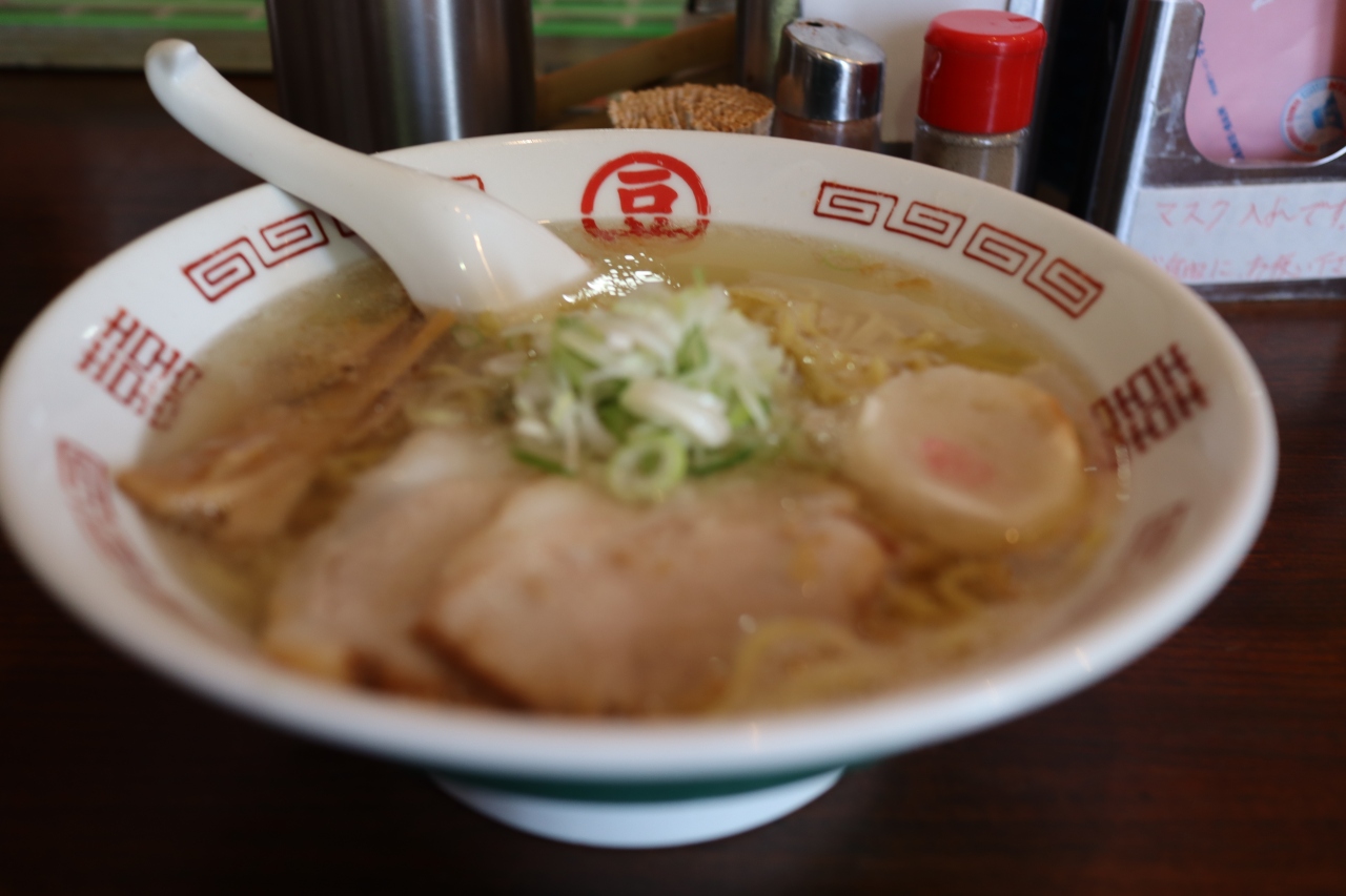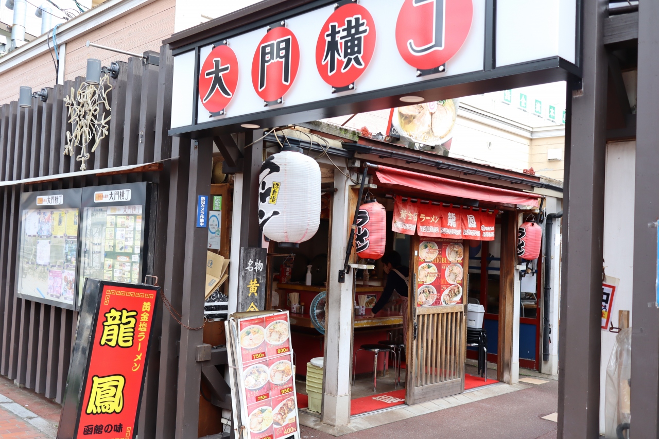 函館駅から徒歩5分くらいのところにある大門横丁は屋台が集まる夜間は賑わう一角になりますが、唯一昼間にお店をやってるのが龍鳳。大門横丁の入口左側で赤ちょうちんが目印です。席はカウンター6席で売りは黄金塩ラーメン。スープは透明感ありシンプルな一杯です。ちなみに近くに人気店の滋養軒がありますがいつも長蛇の列、そんなとき『龍鳳』が重宝します。