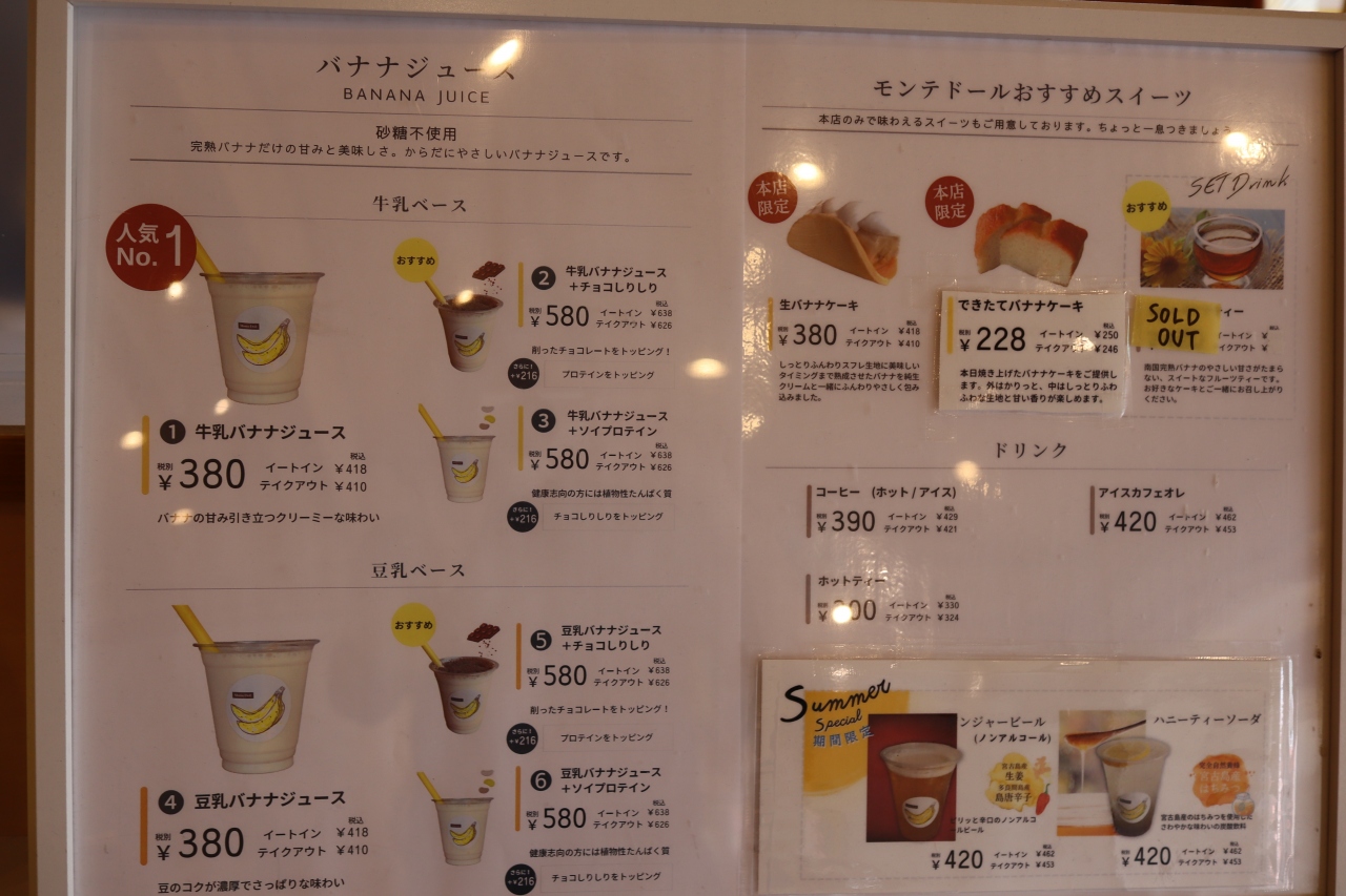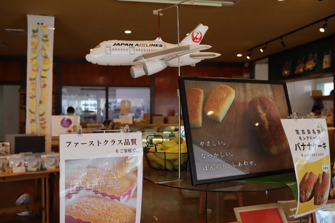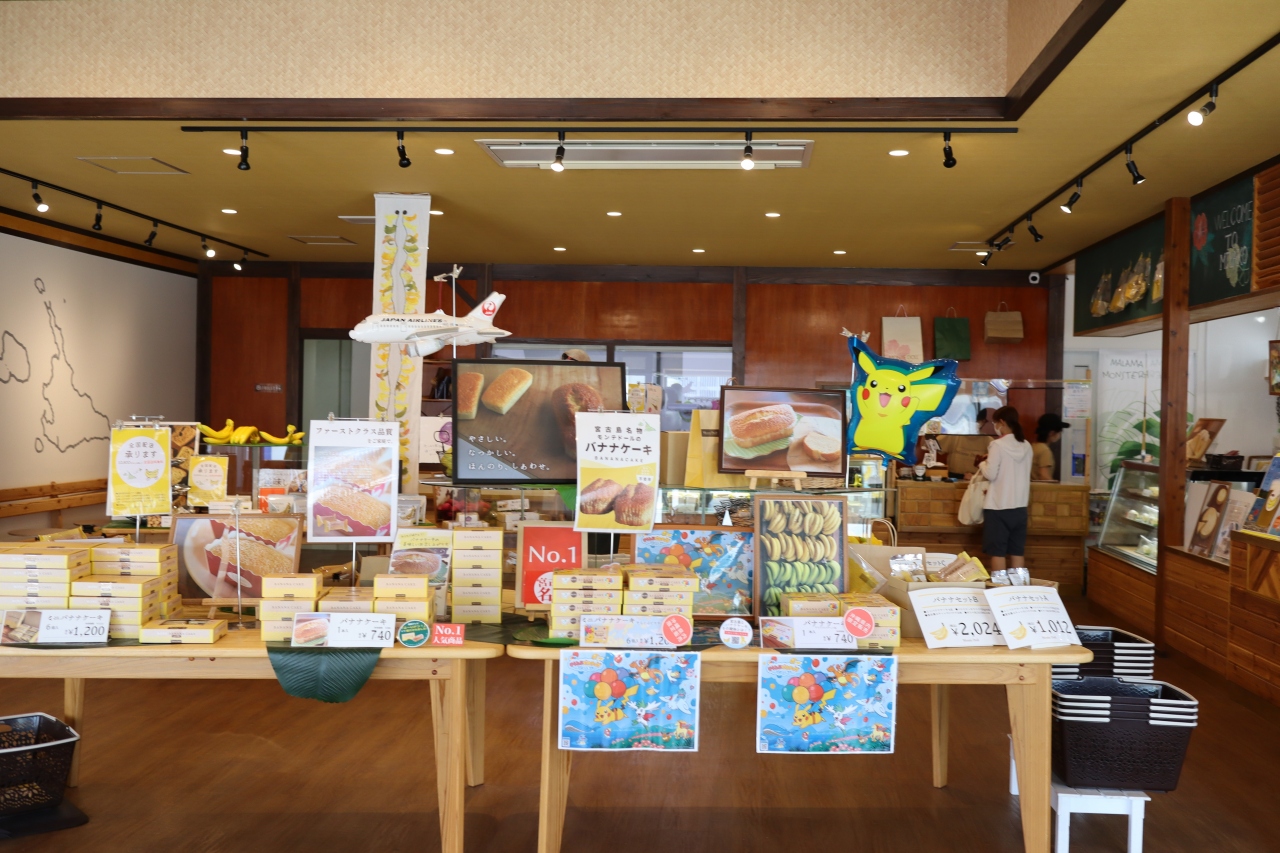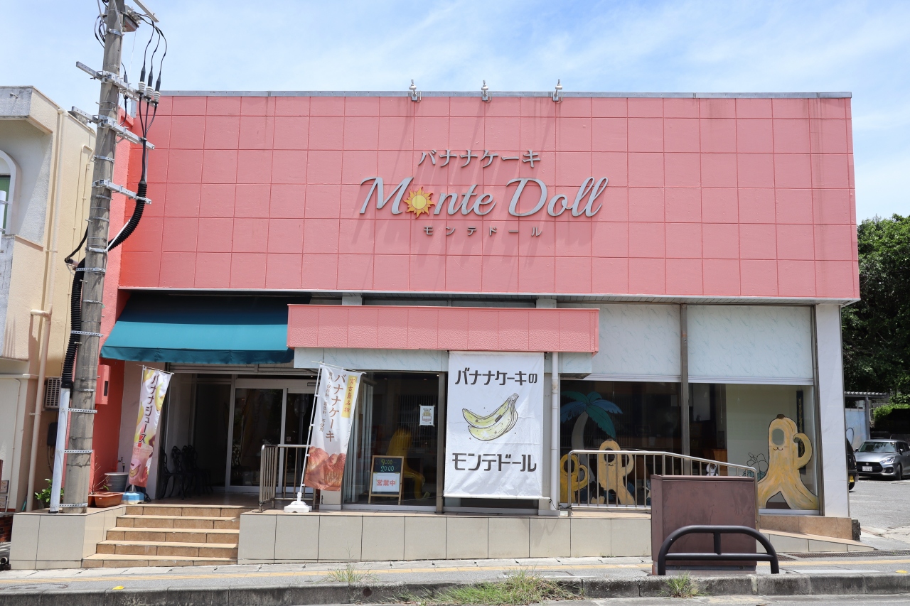 宮古島土産として人気があって有名なバナナケーキのモンテドール。島の駅みやこやイオン宮古南ショッピングセンターなどでも販売していますが、販売商品の種類の多さでやはり本店のこちらが圧倒的に便利です。また、店内にはイートインスペースやお手洗いがあり、暑い日には涼みに入店したうえに、フレッシュバナナジュースや豆乳バナナジュース、それに生ケーキなどもいただけるので良いです。駐車場は店舗の横に数台分あります。