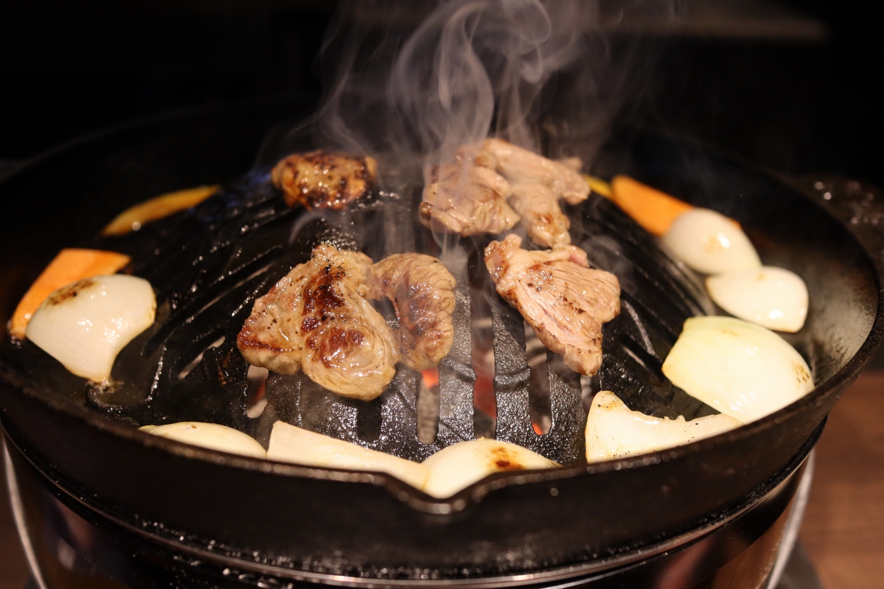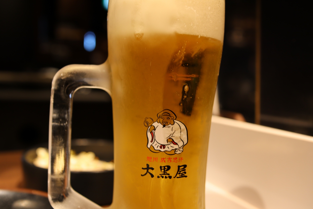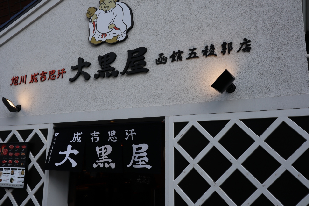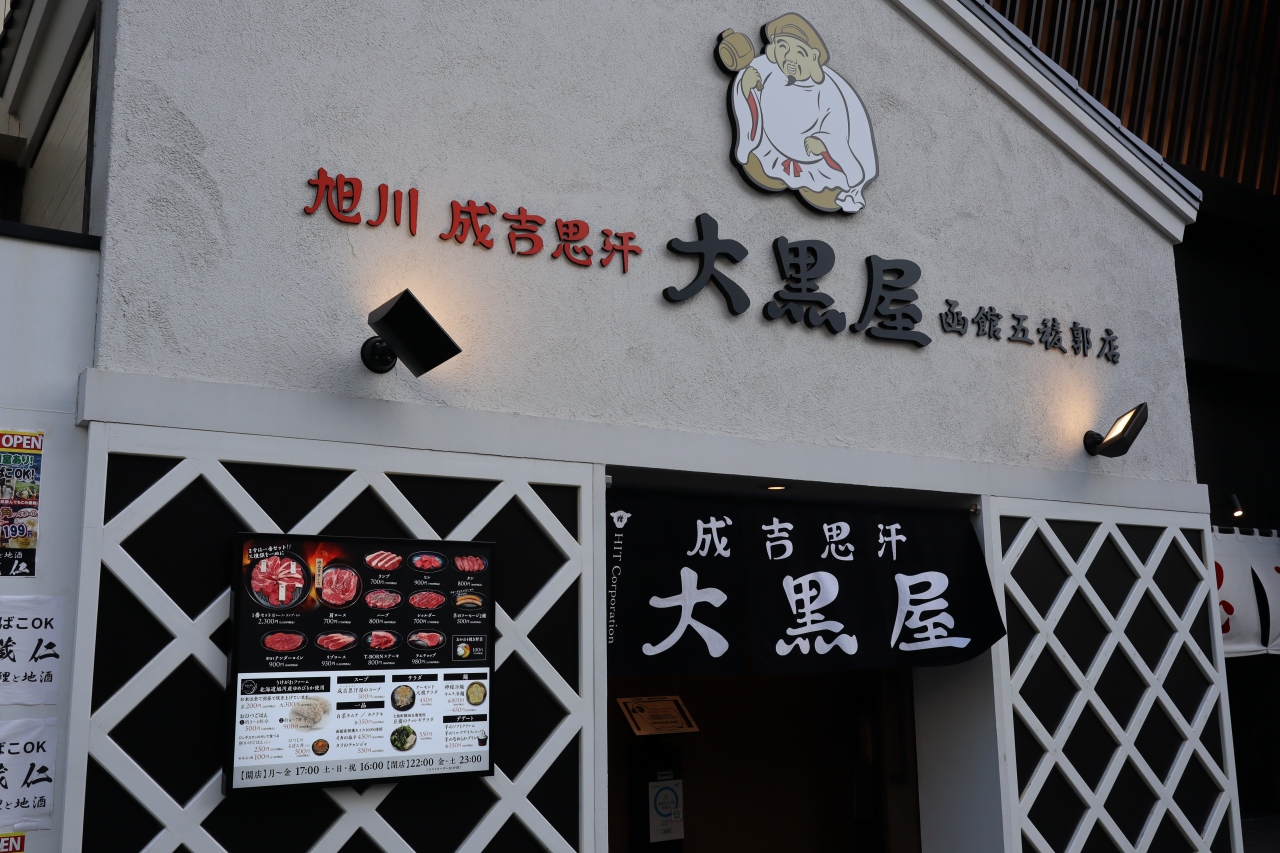 函館市電の五稜郭公園前電停を下車して徒歩2分、函館にまだオープンして数年しか経っていない成吉思汗大黒屋があることを知り訪問しました。店内は綺麗で中央はコの字カウンター席になっていて、感染対策アクリル板で仕切られたお一人様用ブースに通されました。旭川でとても美味しかった定番の肩ロースと生ビールを複数回注文しました。週末は16時に開店します。