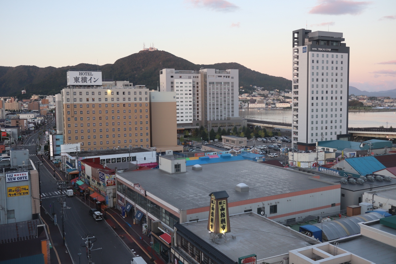 函館駅前バスターミナルのそばにあって観光や食事に出掛けるにはとても便利です。朝食競争が激しい函館ホテルですので朝食が充実しています。函館朝市は目の前で部屋の窓からは真下に見えます。やきとり弁当のハセガワストアが同じ建物の一階に入店しています。函館観光はどこに行くにも函館駅が起点になるので一旦ホテルに戻って休憩や時間調整ができて楽です。全館禁煙ですが2階フロアに喫煙ルームがあります。
