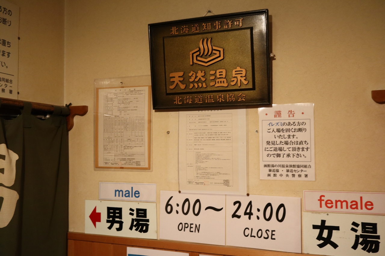 函館の湯の川温泉、湯元啄木亭で日帰り温泉。函館市内から路面電車で湯の川方面、最終の「湯の川」電停のひとつ手前の「湯の川温泉」電停が最寄駅になります。下車して徒歩約5分で到着します。1階ホテルフロントの近くで受付してエレベーターで上階に昇ります。この日は26日(風呂の日)で通常は千円くらいするところが割引料金500円でした。タオルはバスタオルとフェイスタオルのセットで別途250円(ホテル名の印字なし)。函館を見渡せる展望風呂は気持ち良いです。入浴後は1階ロビー階の自販機でビールを買ってゆったりソファーで余韻を味わえます。1階の端っこに喫煙ルームあります。