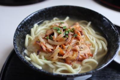 宮古島から北部の西平安名崎と池間島方面への分岐手前にある食堂で、タコ飯が柔らかくて黄色の外観がが印象的な建物ですが、道中は右カーブの左手にありうっかりすると通り過ぎてしまいがち。11時開店から続々と観光客が入店してきます。この日は11時半にも関わらずご飯が無いということで紙に書かれたいくつかの選択肢の中から選ぶことになり、タコそばにしました。2022年6月訪問時のタコ飯の写真も最後に添えます。