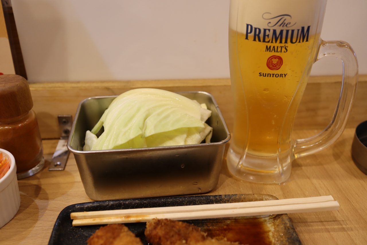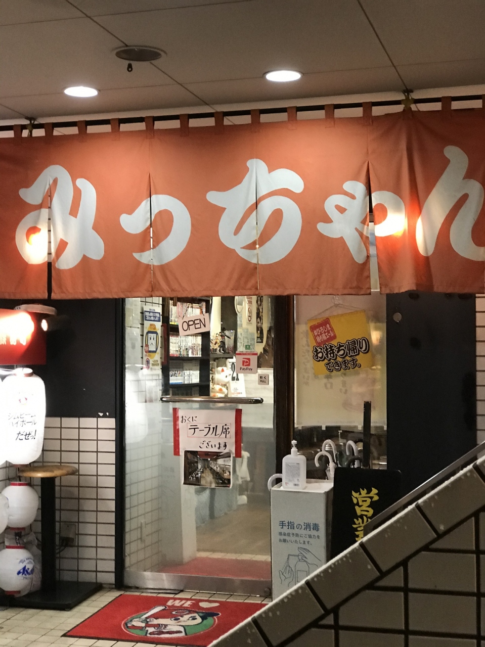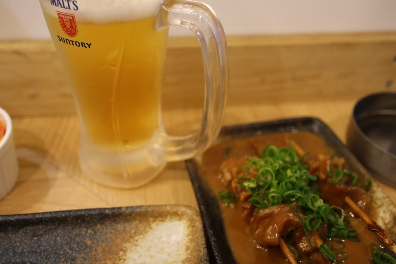 天神橋筋商店街の四丁目と三丁目の境目で地下鉄堺筋線扇町駅の近くです。串カツの七福神は別にJR天満駅の近くや天神橋筋五丁目あたりにも店舗がありますがここは混雑さを感じません。店内は明るくカウンター席のみですが隣とは仕切り板があって感染予防もバッチリで加えて明朗会計です。入店しやすいのか女性のお一人様も見かけました。串カツをお願いするとそれから衣を付けて揚げてくれます。カウンターがいっぱいの時は外の席もあるようです。