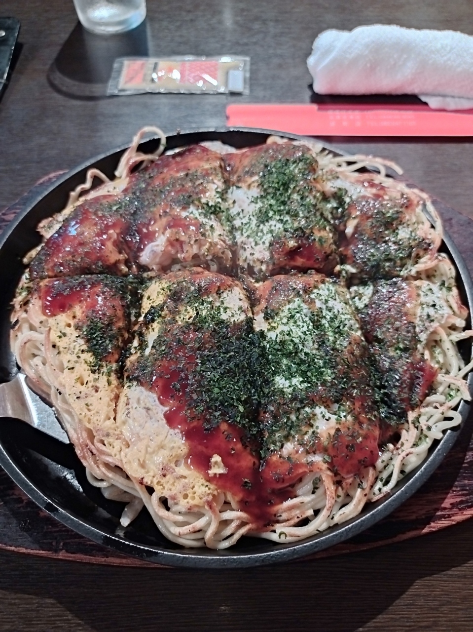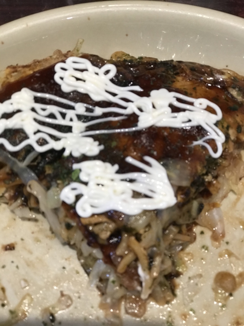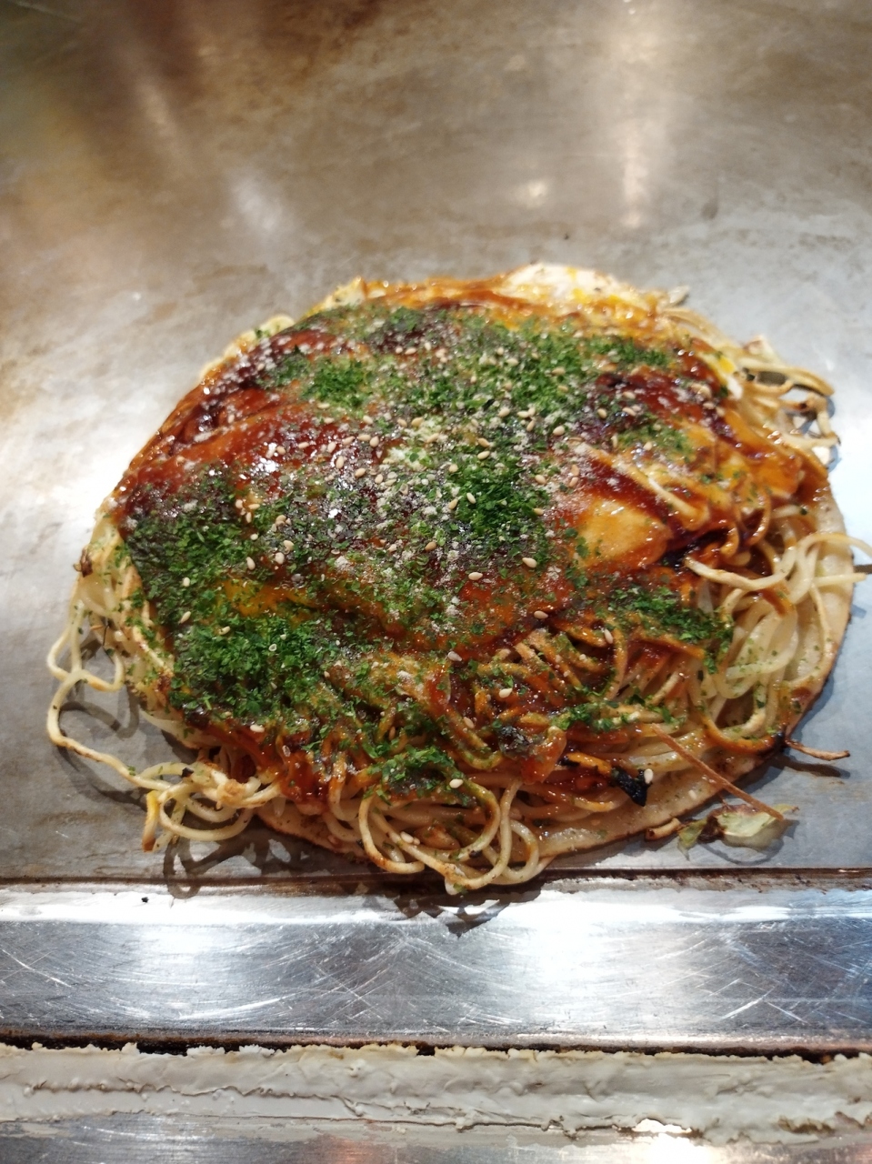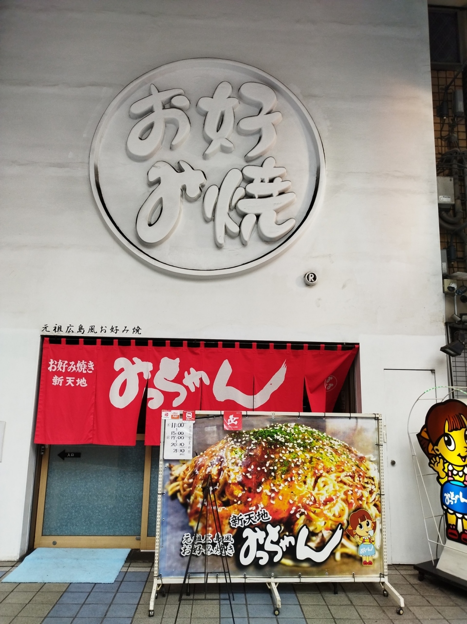 広島市内の繁華街、広電八丁堀電停交差点のヤマダ電機裏にあります。胡子神社の隣で由緒あるところです。ノーマルな肉玉そばのお好み焼き880円を注文しました。大きさが結構あり添えられたマヨネーズで途中味変を試みてやっと食べ上げました。