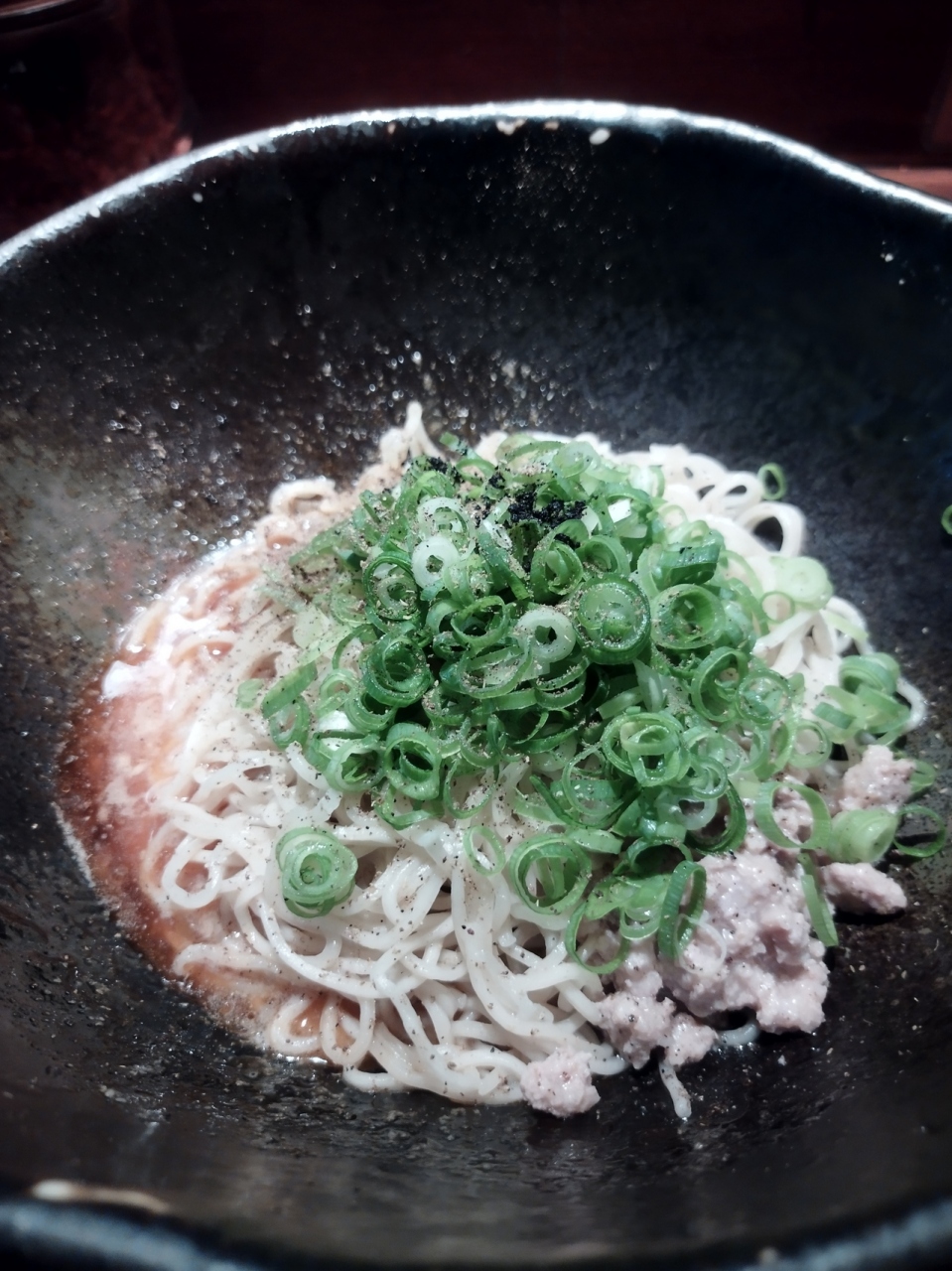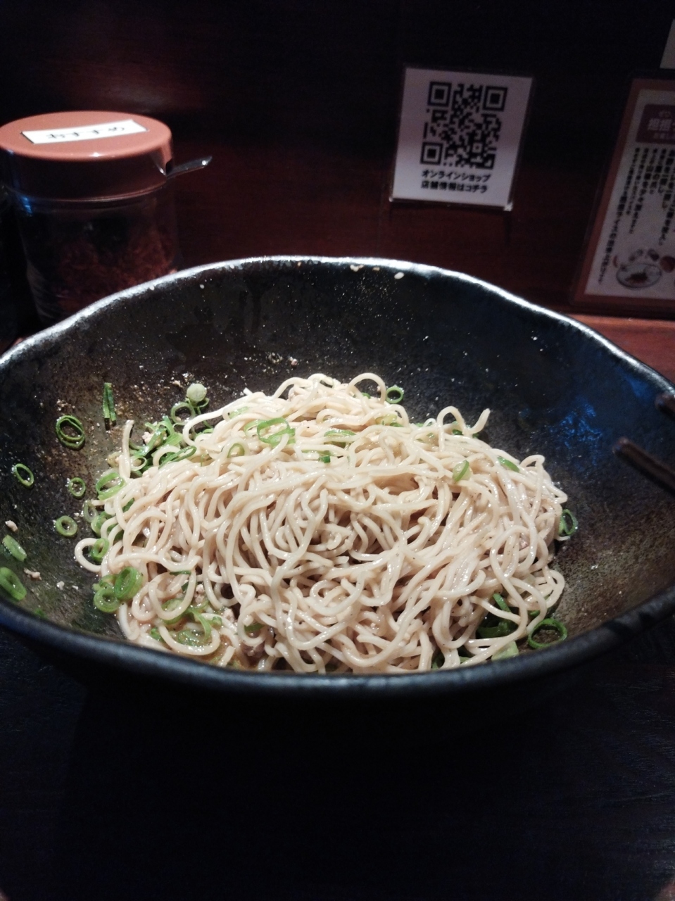汁なし担々麺専門店というのは広島ならではでしょうか。まず、食券機で買いますが1辛から4辛まであり何を選んたら良いか迷いましたので基本を聞くと標準は2辛とのこと。そう待ち時間もなくサーブされました。30回ほどかき混ぜてから食べるようにも言われました。普通だと量的には少ないと感じるかもしれません。