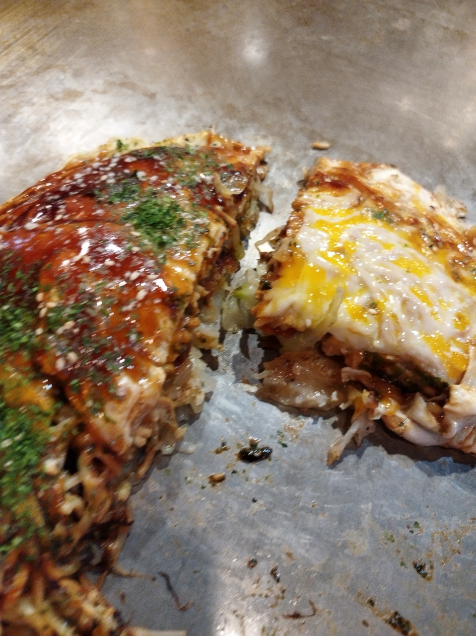 広島お好み焼き基本の肉玉そばが見た目大きくボリュームあって税込み750円と、他店が大体850円から880円することから言えばコスパがかなり良いです。以前は同じ広島市の銀山町に店舗がありましたが、2年前にココ鉄砲町に移転しました。お店の方々もお好み焼きの味も以前から変わりません。マヨネーズが卓上に普通にあるのも安心です。