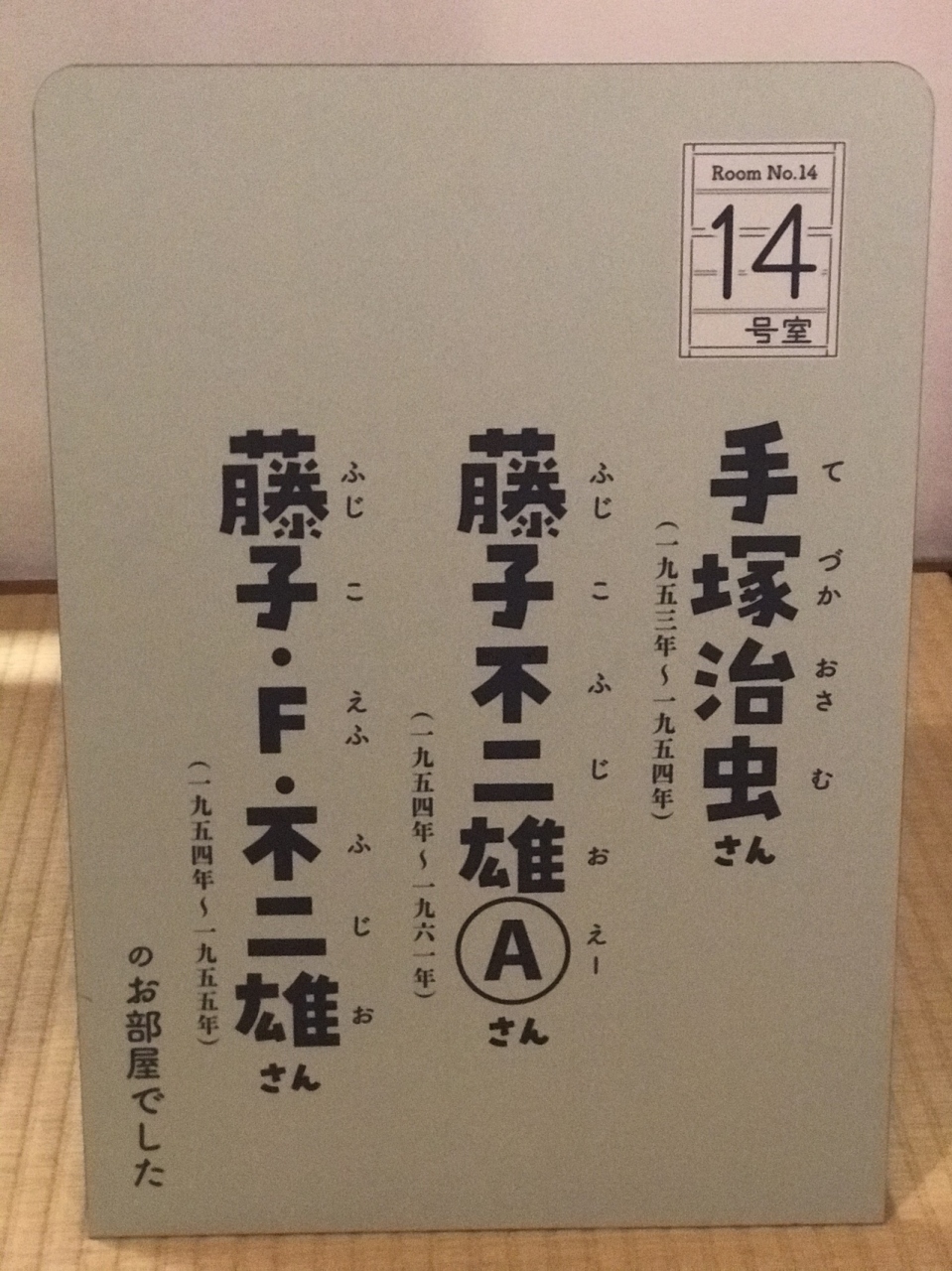 トキワ荘マンガミュージアムは東京都豊島区南長崎三丁目の花咲公園内に再現されています。まず一階入口で入場料500円、靴は靴箱へ、靴下ない場合はナイロン製靴下を借りることになります。階段で二階に上がります。最初に共同トイレ、一番最初の部屋に手塚治虫や藤子不二雄が生活していた部屋があり、順に赤塚不二夫が居た部屋や共同の炊事場などが続きます。二階突き当りのエレベーターで一階に戻ります。二階は撮影禁止のマークが無い場所で写真が撮れますが一階は撮影は全面禁止となっていました。車で行きましたがすぐ近くにコインパーキング40分まで200円があって便利でした。