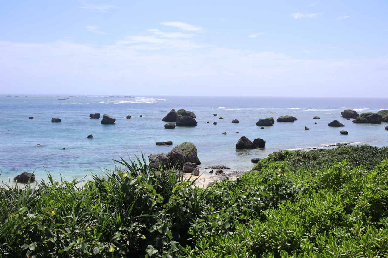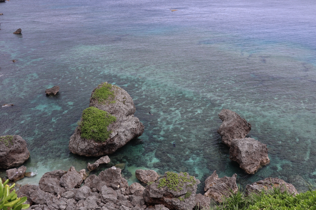- たくさん岩が突き出たすばらしい宮古ブルー