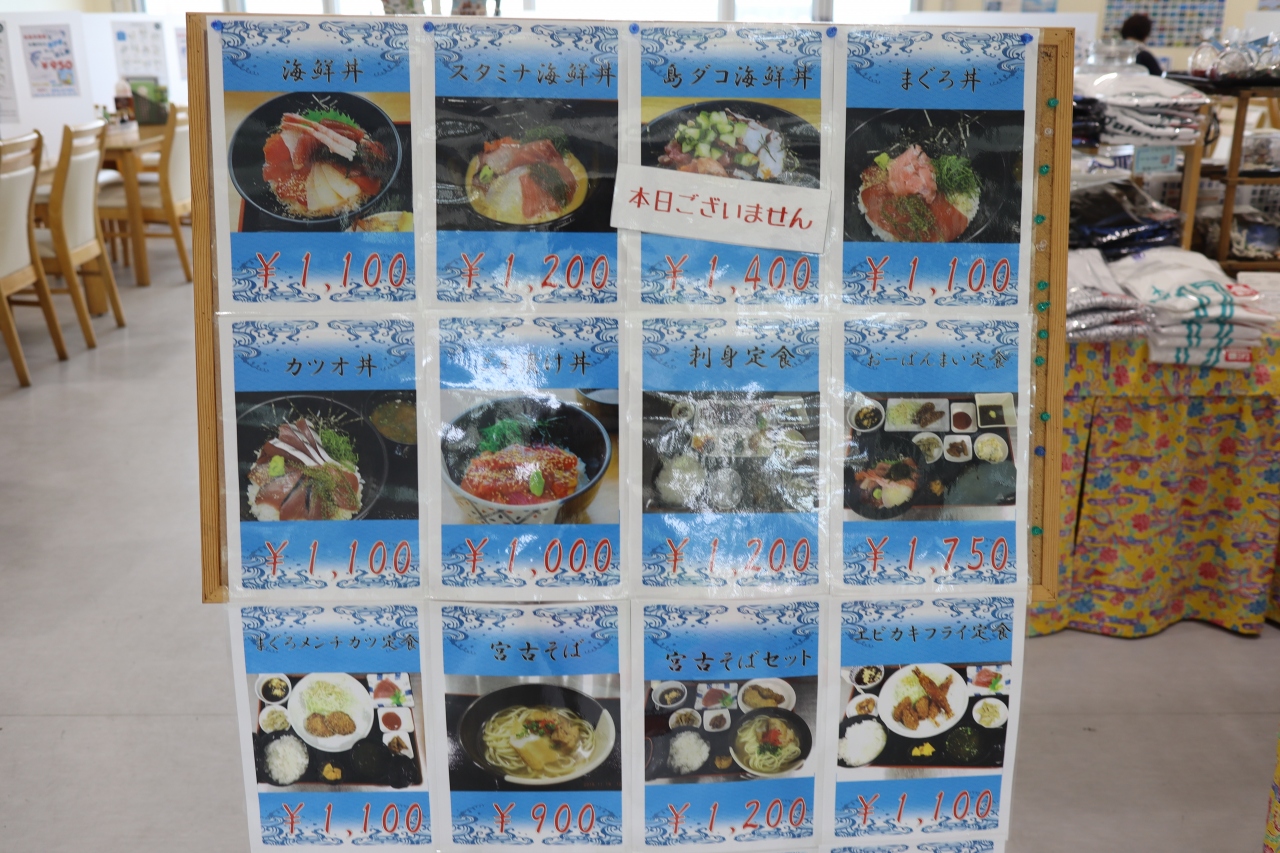 前回来たときは火曜日定休日でしたので、曜日を気にしながら伊良部島へ渡る計画を立てました。伊良部大橋を渡って右に行くと15分くらいで佐良浜漁港に着きます。そこにおーばんまい食堂があります。駐車場は漁港内の青空駐車場。店内はエアコンが効いていて気持ちが良いです。海鮮丼には青さ汁付で1,100円とコスパが良いです。伊良部島に行ったらまた寄りたい食堂です。近くにサバウツガーという観光スポットがありそこから眺める海の青さも格別でした。
