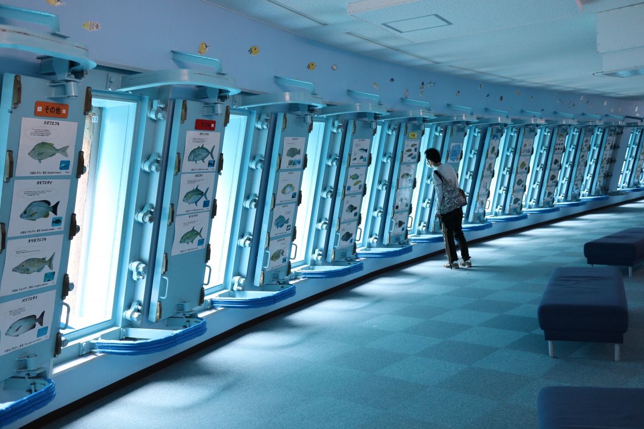 強化アクリル板越しに海を泳ぐ魚が観られる自然の水族館といった観光スポットになります。宮古島中心部から北東の方角にあり車でないと行けません。池間島や島尻マングローブ林の観光と合わせて訪れることになるようです。客層として大体は小さなお子様を連れた家族連れか若いカップルや団体で、中年おやじが一人で行くようなところではありません。