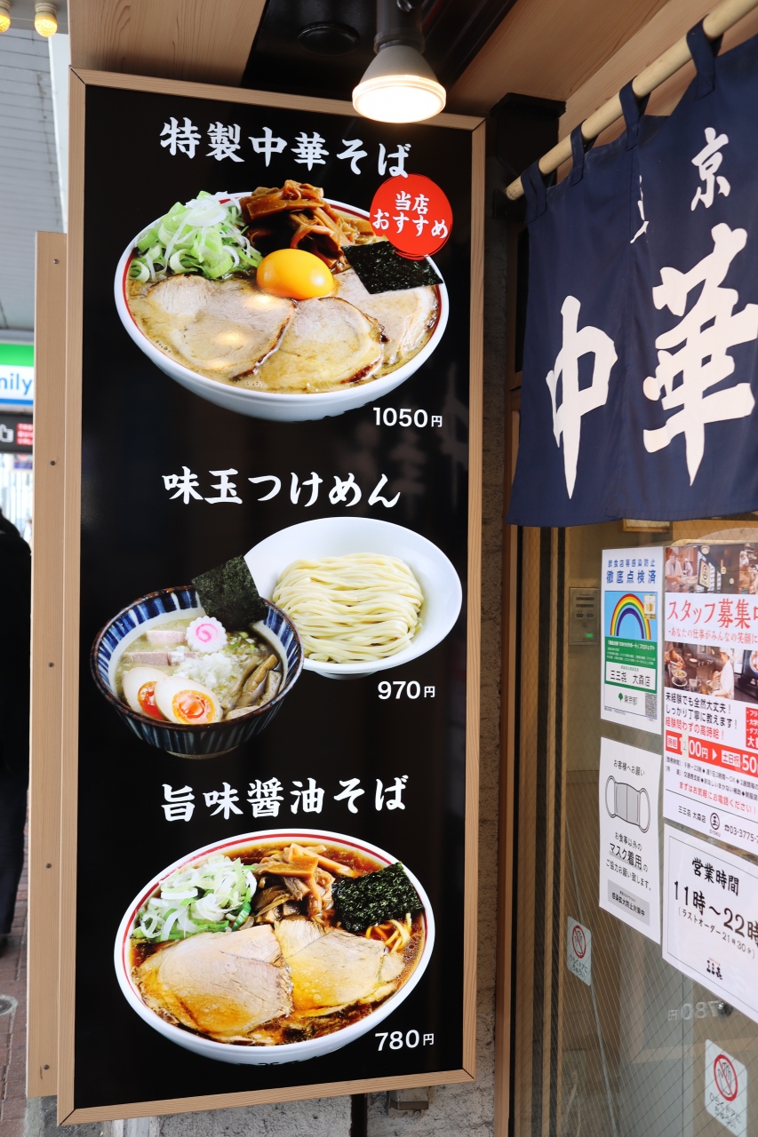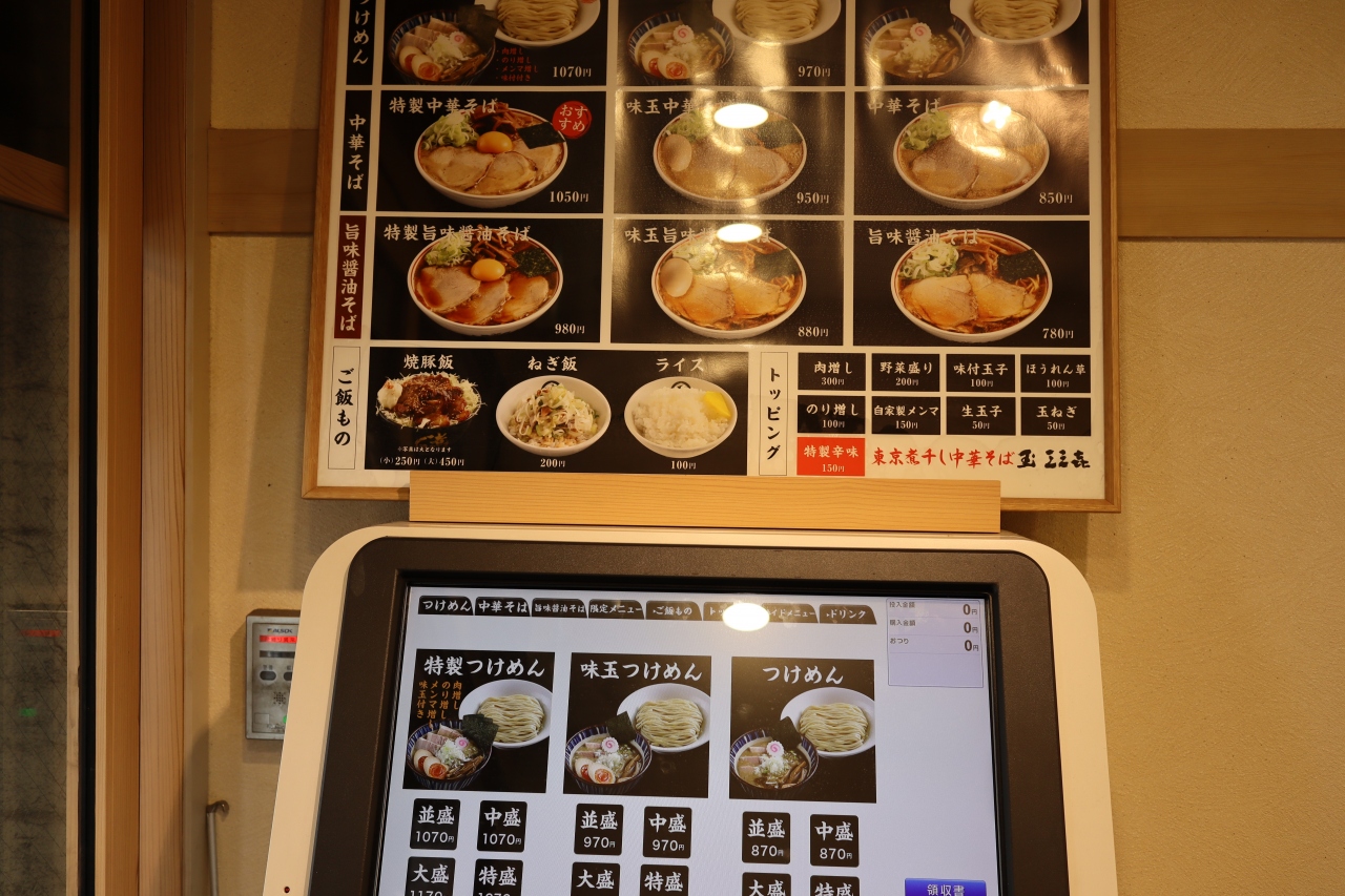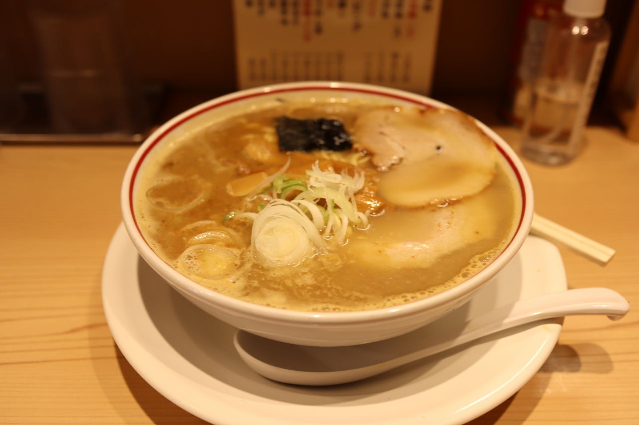 JR京浜東北線の大森駅西口、東急バス2番のりばのところに店舗はあります。暖簾をくぐると左手に食券機がありまず食券を買います。この日は中華そば850円(税込み)を注文しました。煮干しのパンチがかなり効いてスープはドロッとしていて麺は細めで普通においしいです。また、つけめんもおいしいですよ。