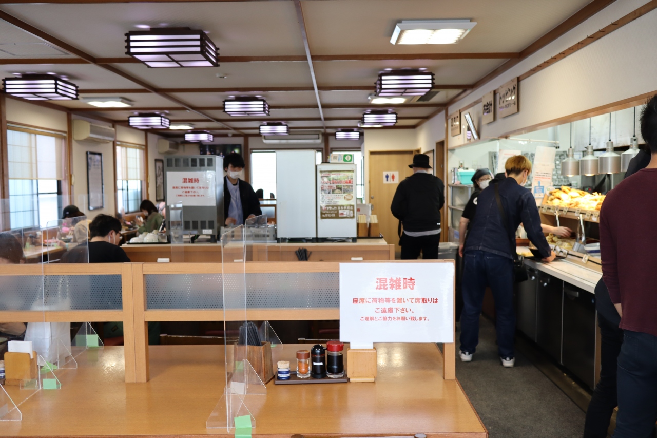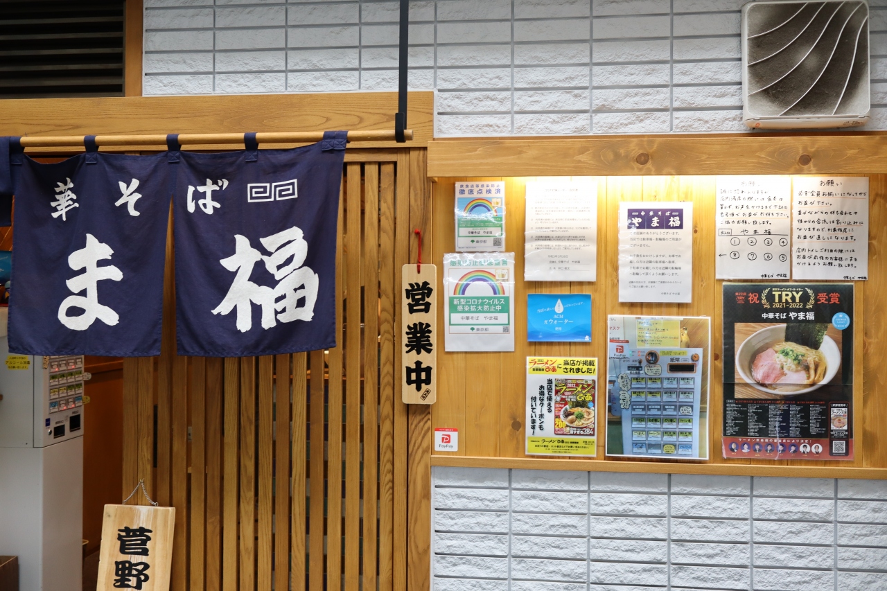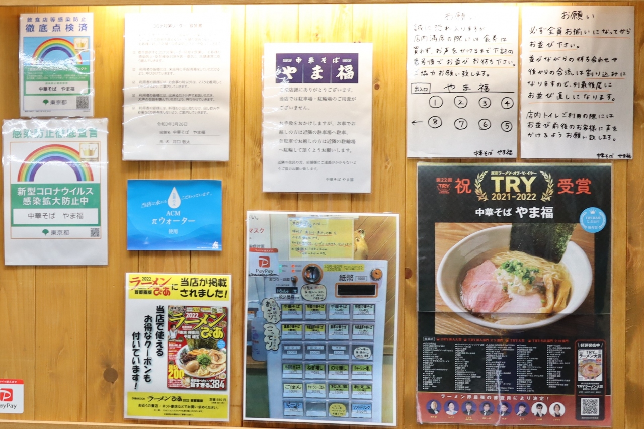 JR蒲田駅の西口アーケード(蒲田サンロード)を徒歩で約2分入ったところにあります。まず入口左手に食券機があるので食券を買い求めて8席あるカウンターに着席します。