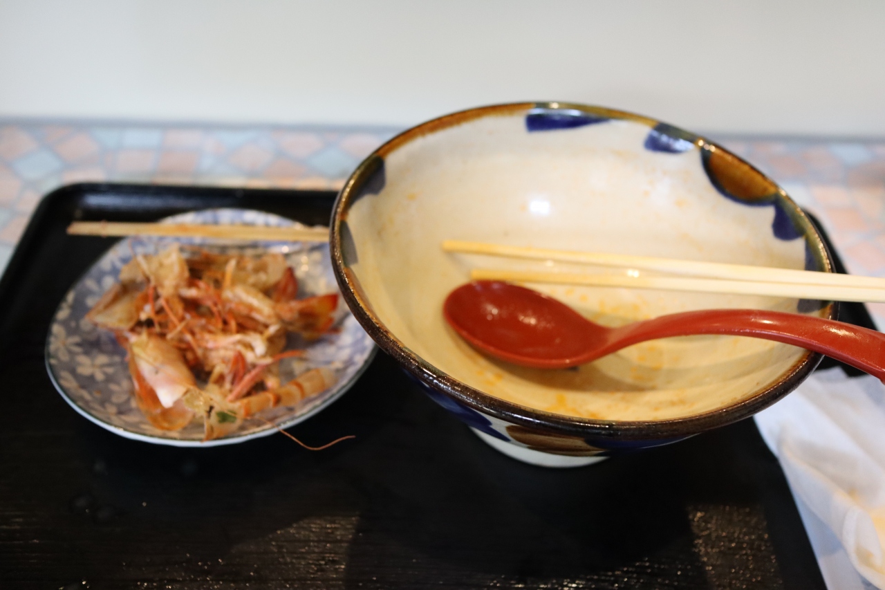 宮古島産車海老の濃厚!味噌そば(税込1,200円)か、宮古牛ホル麺(税込1,200円)の何れにしようかと前日から悩んでいたもののこの日は宮古牛ホル麺が残念ながら売り切れ。名物の車海老の濃厚味噌そばを食券機で購入。車海老の食べ方は説明書きが貼ってあります。濃厚なエビ出汁スープはとても旨く、思わず飲み干してしまいました。- 旅行時期