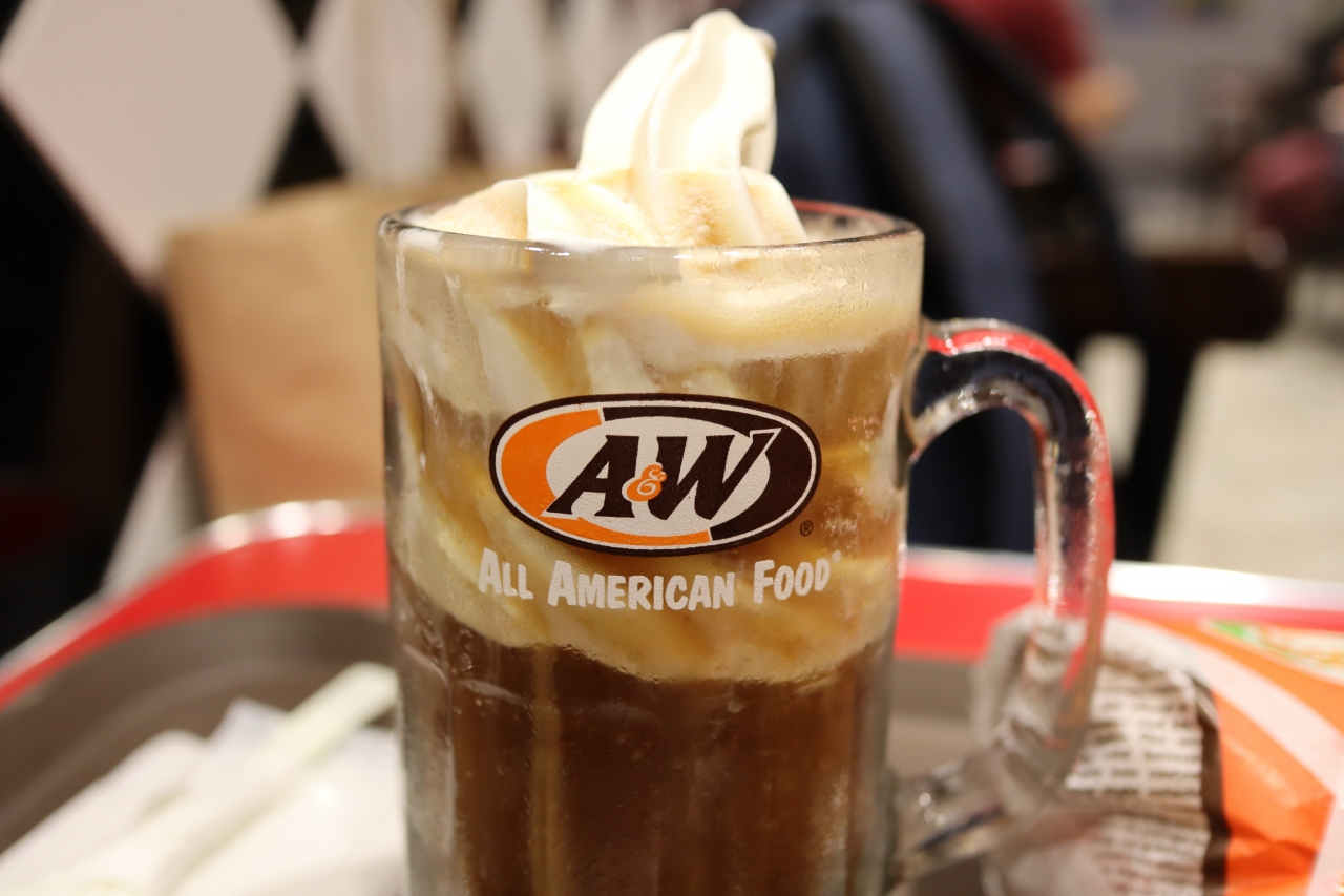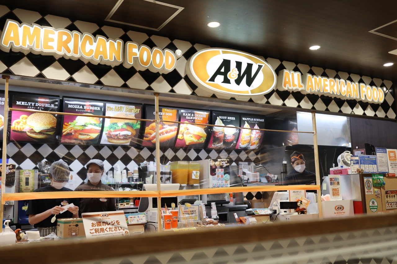 宮古空港発羽田行19時50分発の便に搭乗する前に2階出発ロビー階の一番奥にあるA&Wに寄りフライトまでの時間調整。この時間、他のショップではすでに営業が終了しているところもありました。