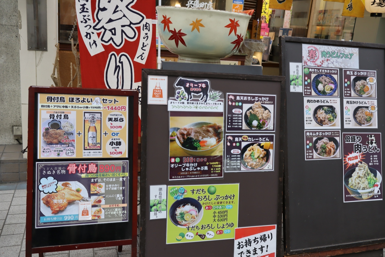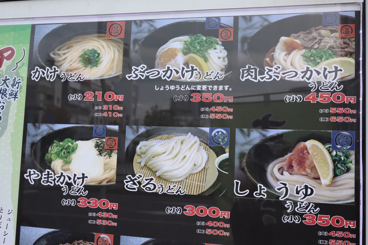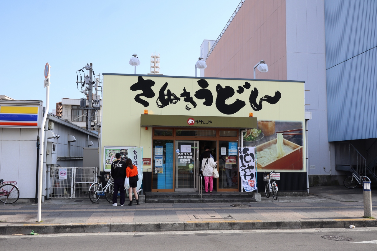 高松駅から中央通りを南へ10分ほど歩いた高松兵庫町商店街との信号交差点の角地に店舗はあります。入店後はセルフサービスでトッピングしていく形で、最後にうどんを注文して支払精算します。