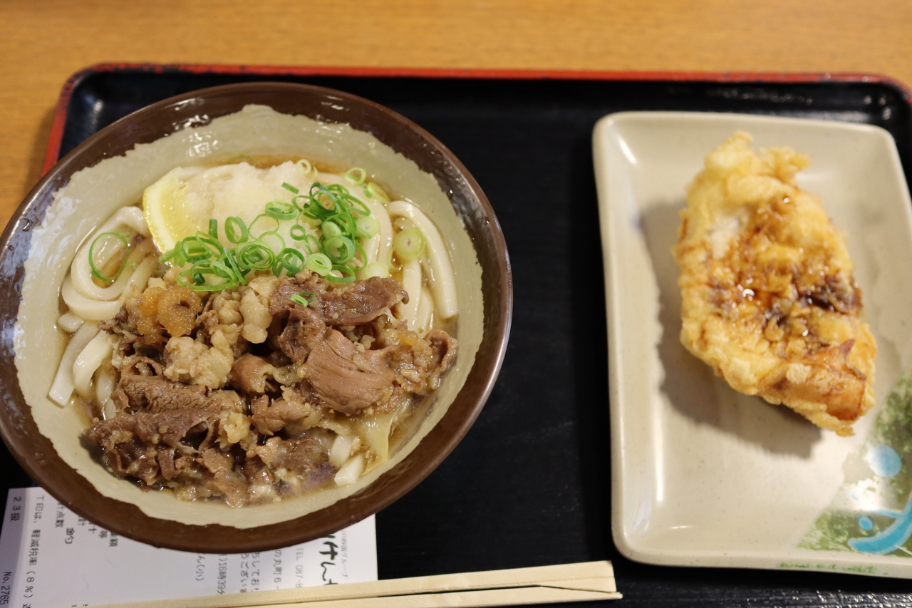 高松駅から徒歩1分で本場のさぬきうどんを召し上がることができます。香川県内幾多のうどん屋があれど百名店は超行列、有名店は車が無いと行くことができない場所にあったりします。その点、利便性と経済性、そして味を考えたとき当店は十分納得のいくうどんを堪能できます。この日は肉ぶっかけととり天かしわをいただきました。