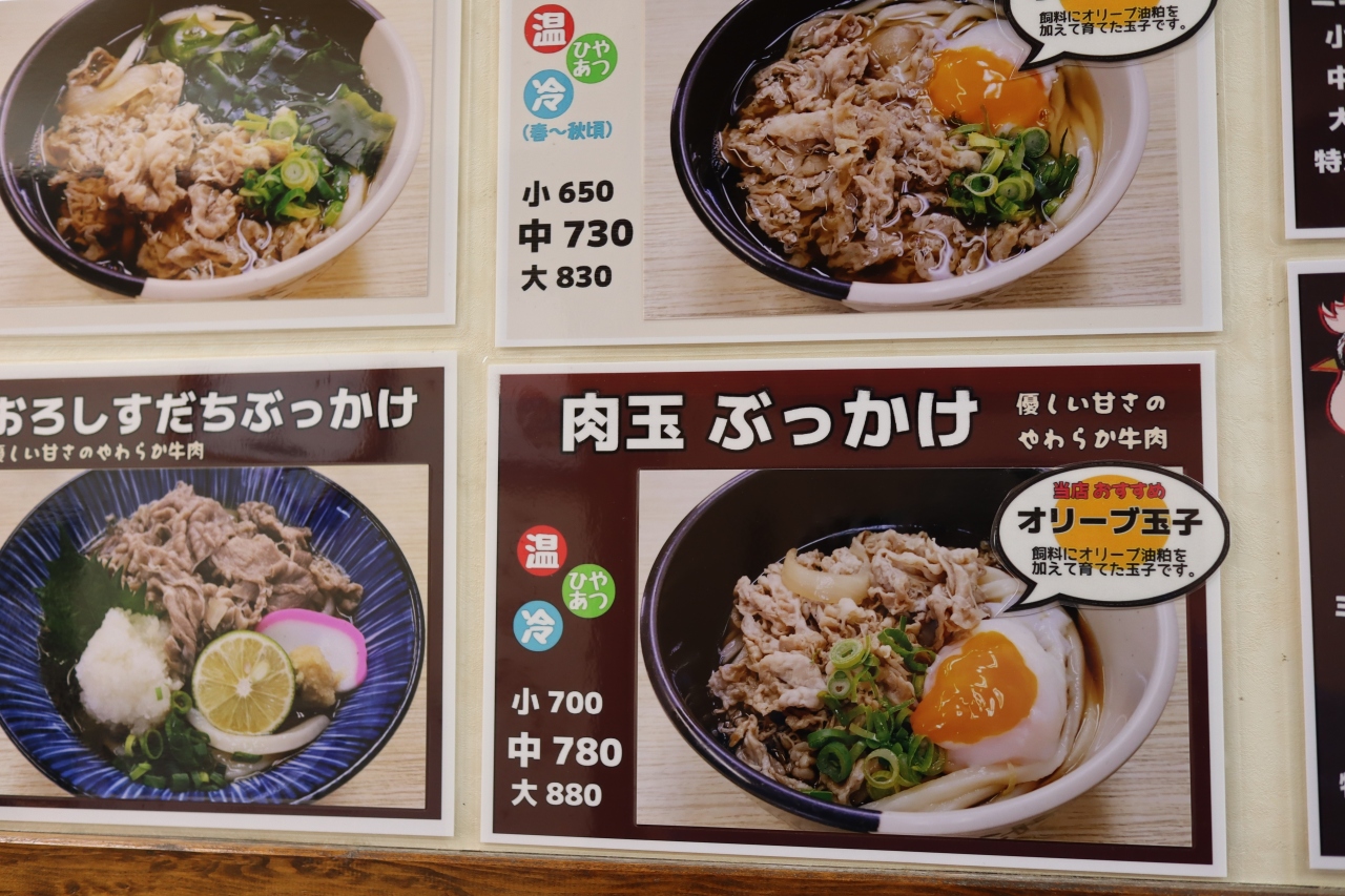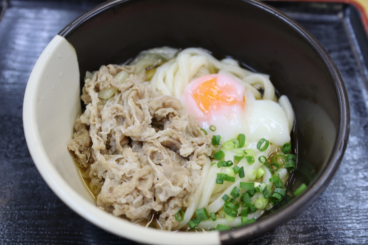 この日は「肉玉ぶっかけ」をいただきました。優しい甘さのやわらか牛肉とオリーブ玉子というキャッチフレーズ。他のうどん店舗に比べて牛肉の量が多いと思います。うどんは打ち立てしか提供していないとのことでコシがあっておいしいです。