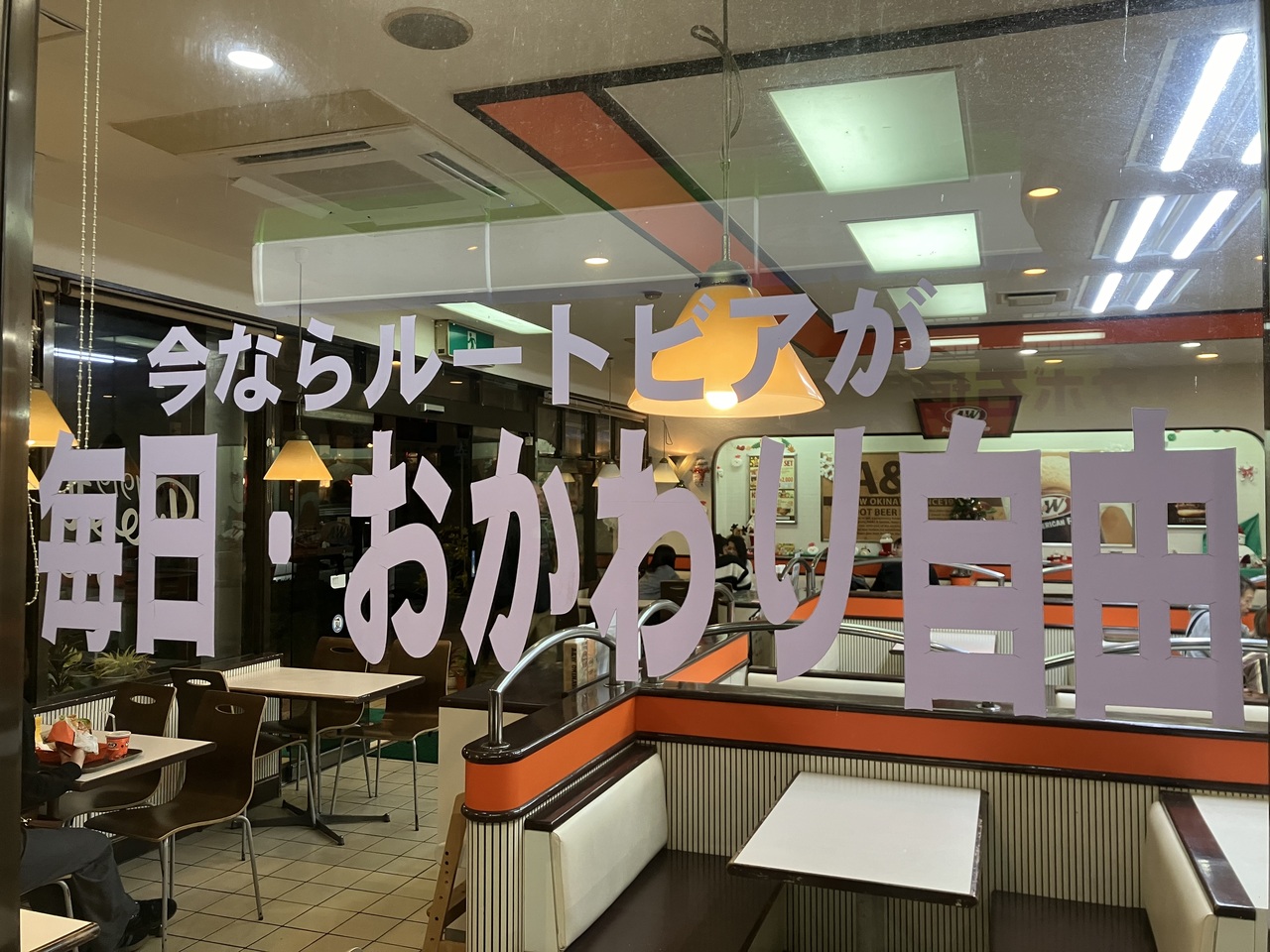 アメリカンサイズのハンバーガーでデカいというのが特徴でしょうか。店のガラスに「今ならルートビアが毎日おかわり自由」と書いていました。以前の記憶ですが、確か、宮古島空港店では水曜日だけだった気がしました。- 旅行時期