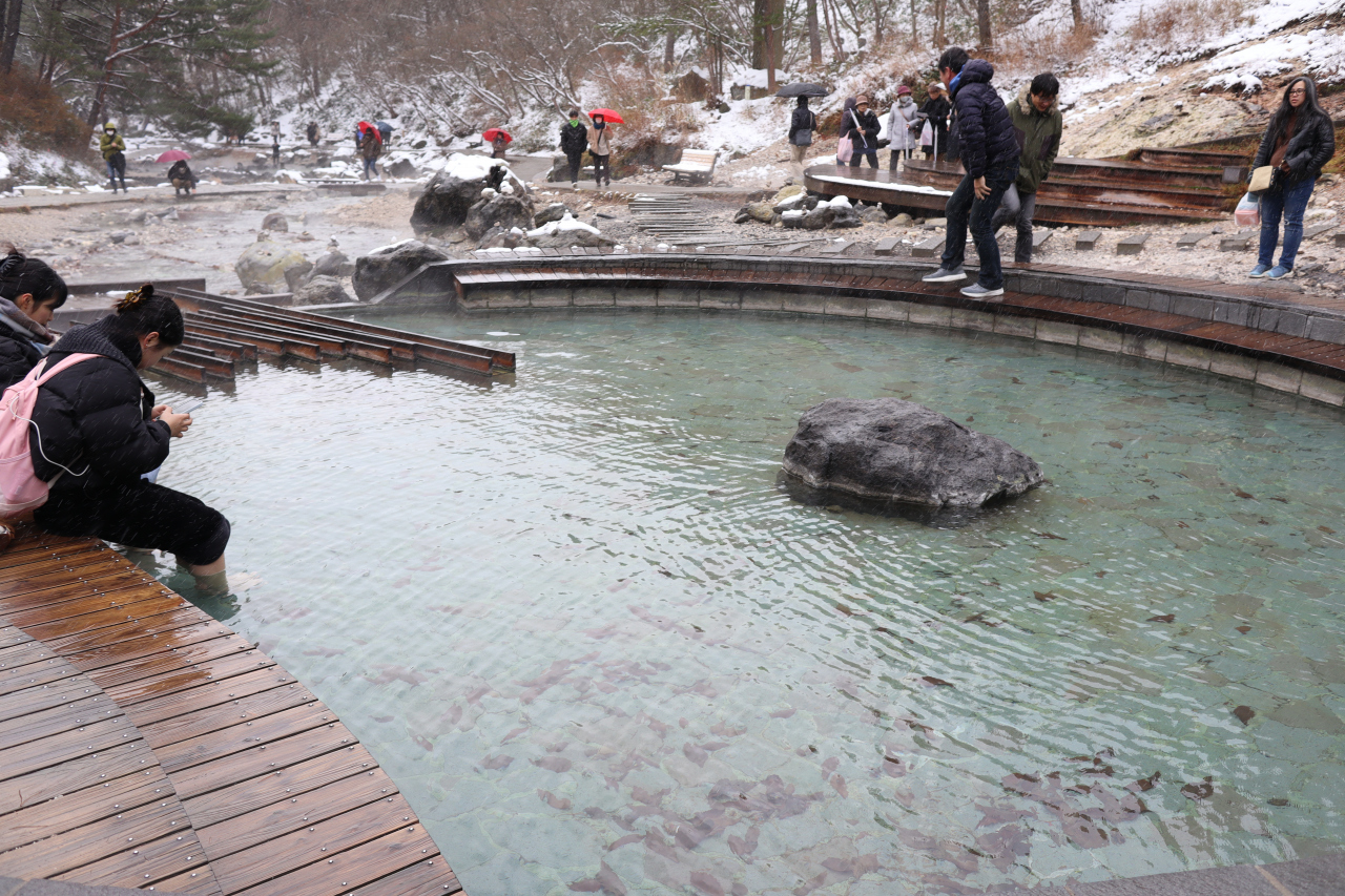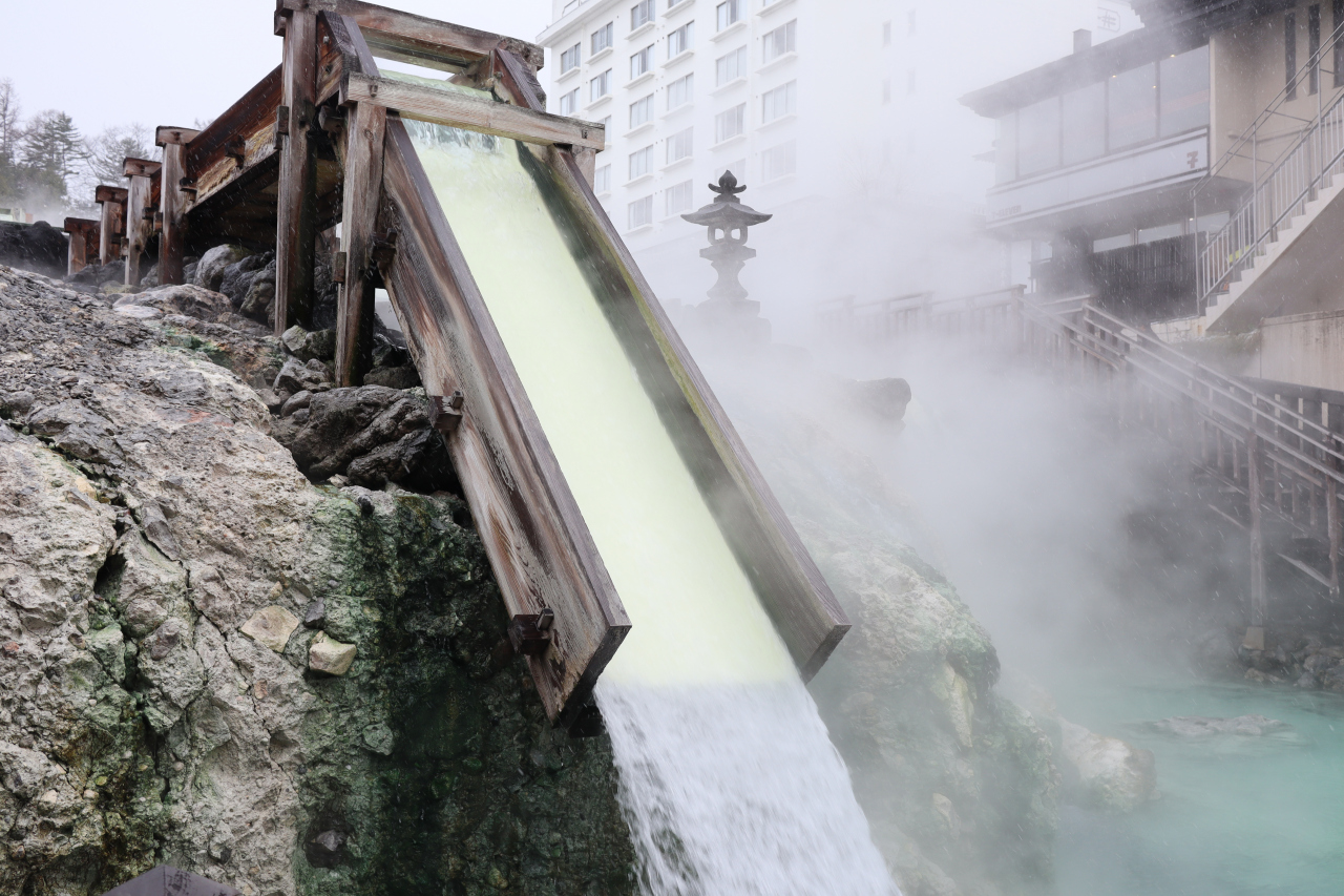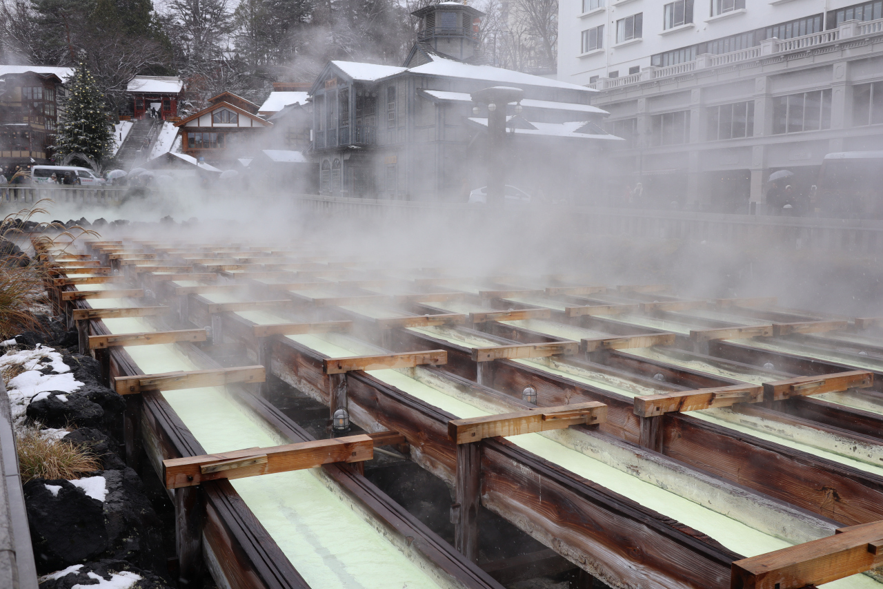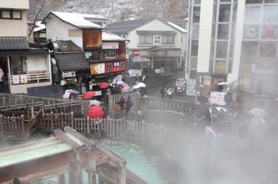その中心にある湯畑は、昼間は激しく流れ落ちる源泉に驚き、夜はライトアップが幻想的で感動します。ホテルや旅館に食事処が湯畑の周りにたくさんあるのでこの辺りの散歩は気持ち良いです。- 旅行時期