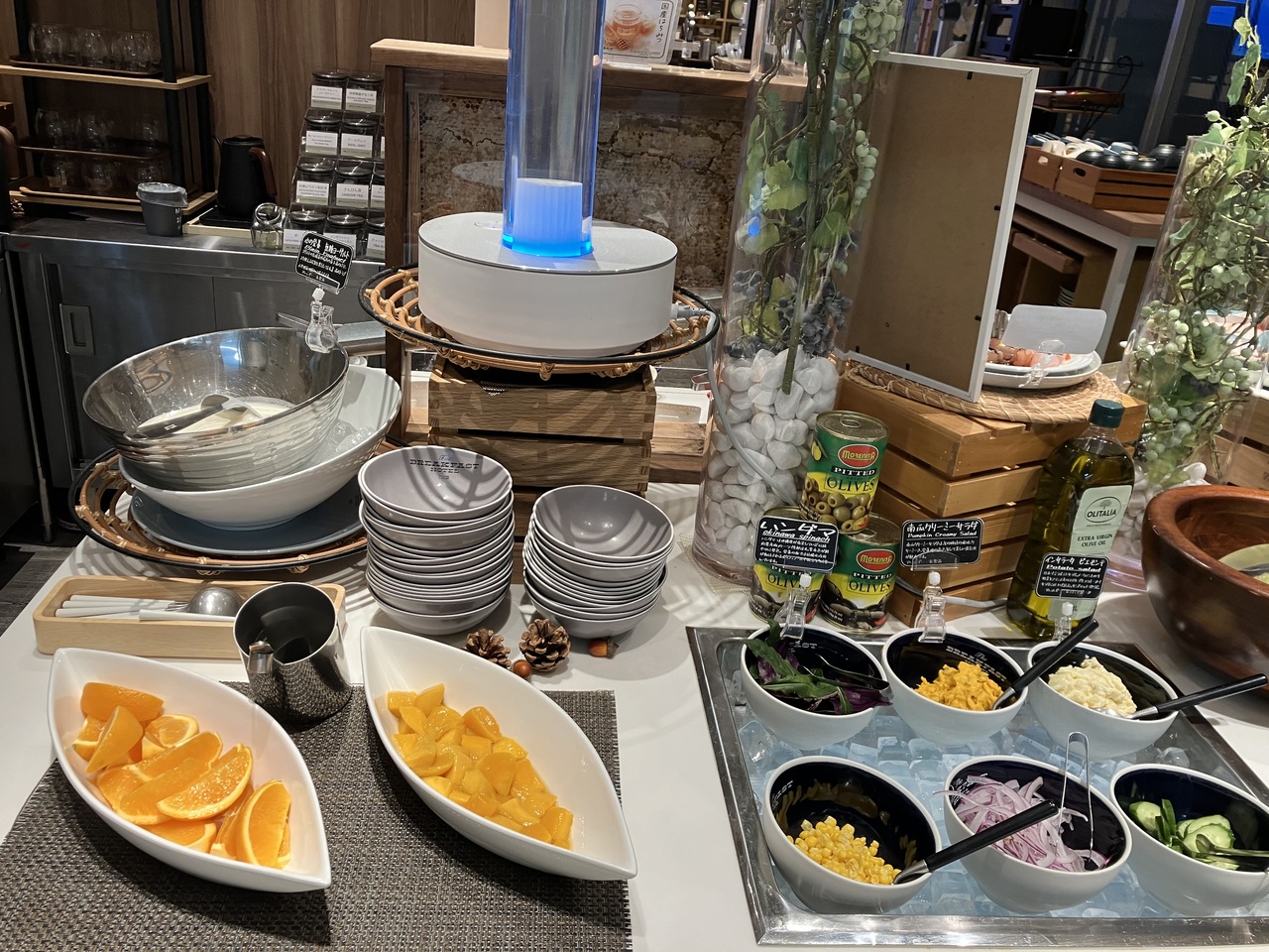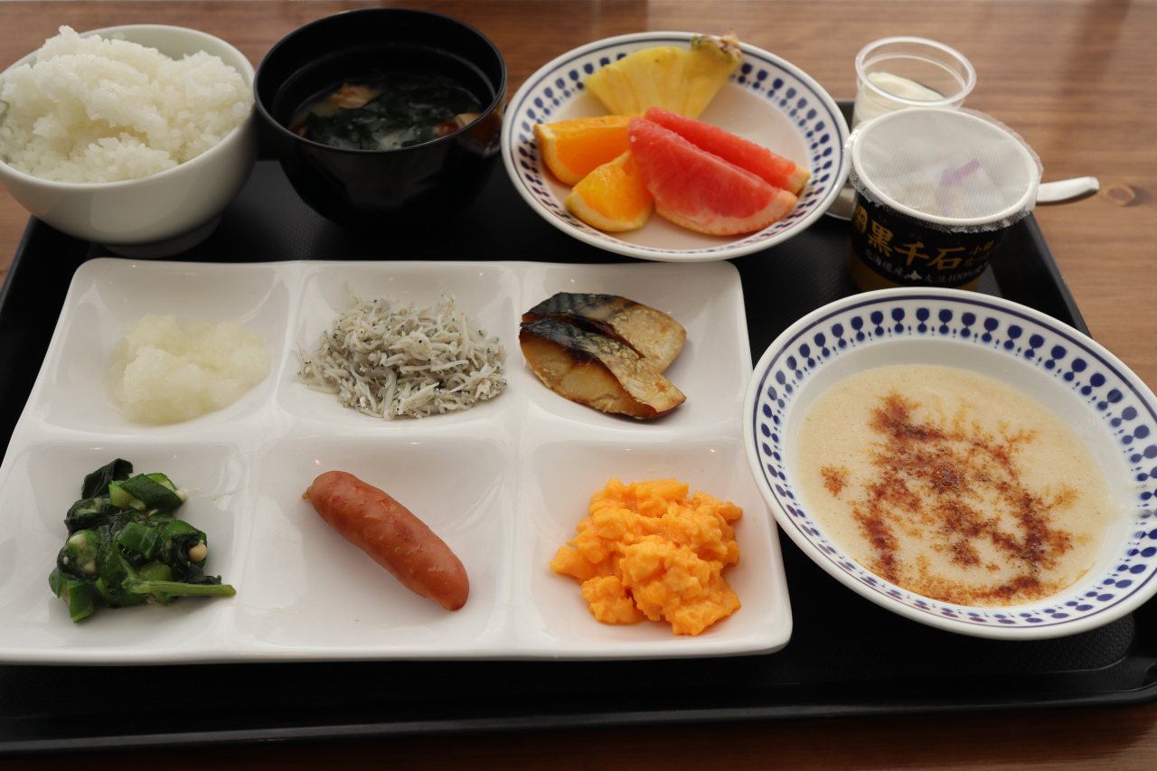 石垣島の繁華街にある超便利なホテルです。ユグレナモールまで徒歩で30秒。石垣港離島ターミナル近くの730交差点からも約3分と好立地。建物はコンクリート打ちっぱなしのような頑丈なマンション風。受付ロビーは5階にあります。朝食も5階でいただきます。バイキング形式で好きな物を好きな分だけいただきました。個人的にはマンゴーが美味しかったです。