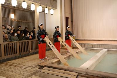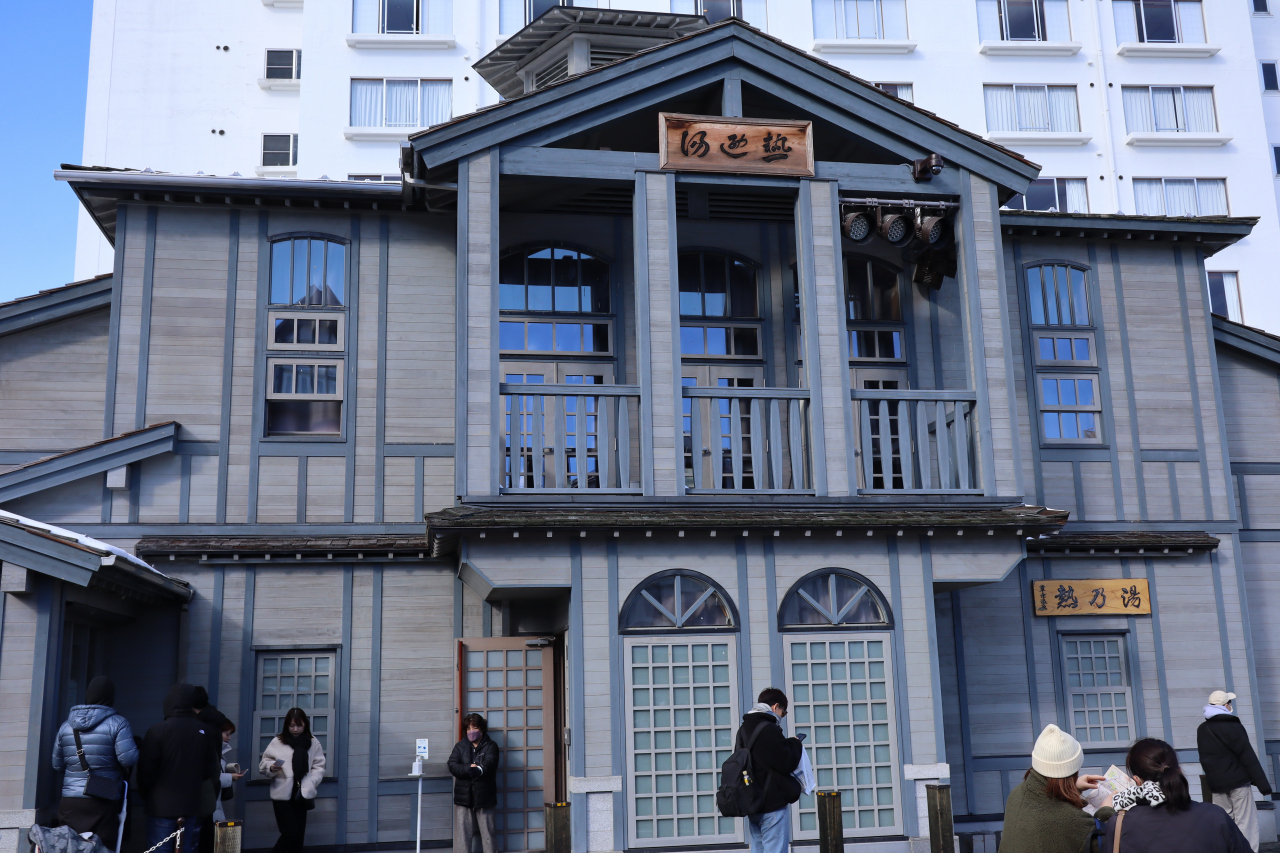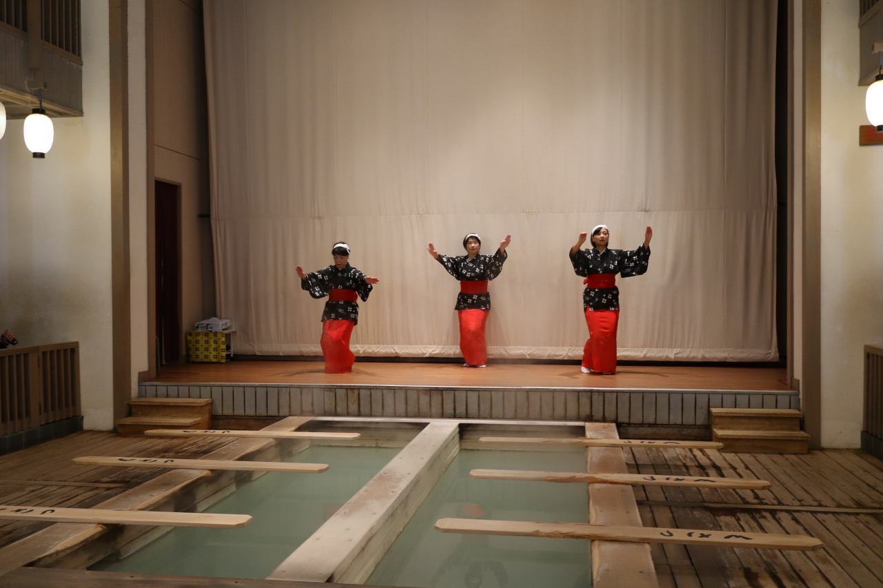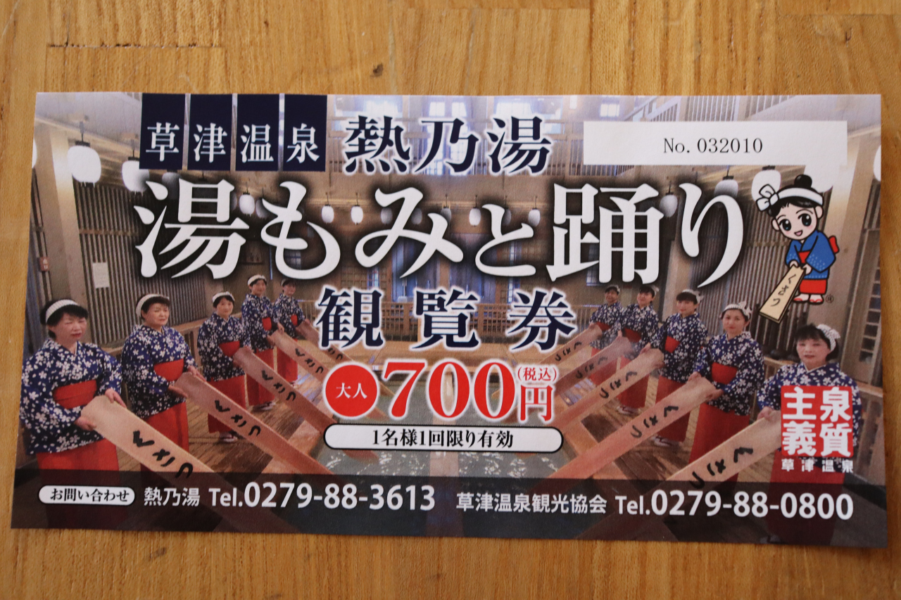 熱乃湯は草津温泉の湯畑のすぐ脇にあります。館内では草津節を唄いながら湯もみが行われます。観覧料は2025年4月現在で大人700円、館内は自由席、約20分の豪快な「湯もみと踊りショー」が楽しめます。草津温泉に行ったら寄らずに帰れません。
