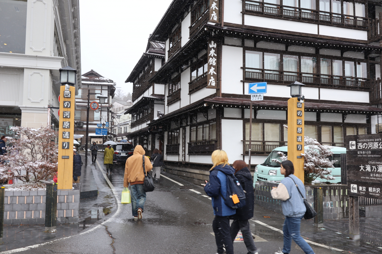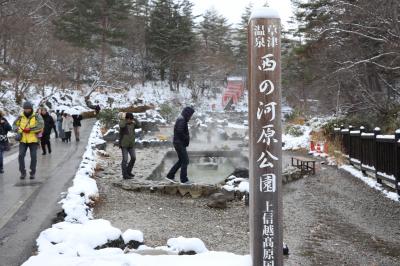 草津温泉の玄関口であるJR長野原草津口駅から草津温泉バスターミナルまでノンストップで20分、運賃大人710円。草津温泉は標高が1,100mほどの高台にあるため冬は雪景色が多いです。