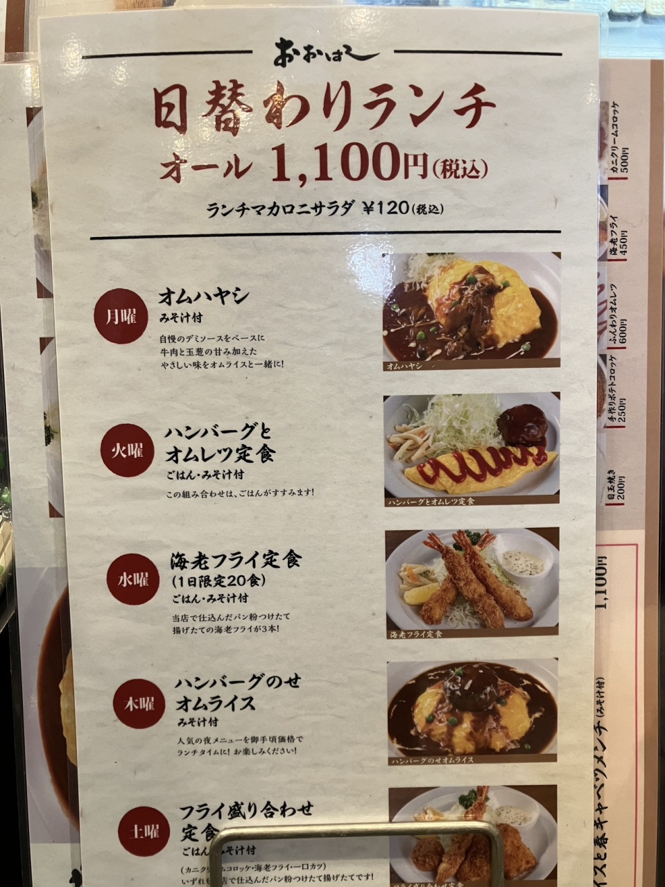 日替わりランチが税込1100円ということであまり考えずに注文。その日は火曜日だったのでハンバーグとオムレツ定食でした。ザ・洋食とといった感じで最近こういったお店が少なくなったので懐かしい感じがしました。- 旅行時期
