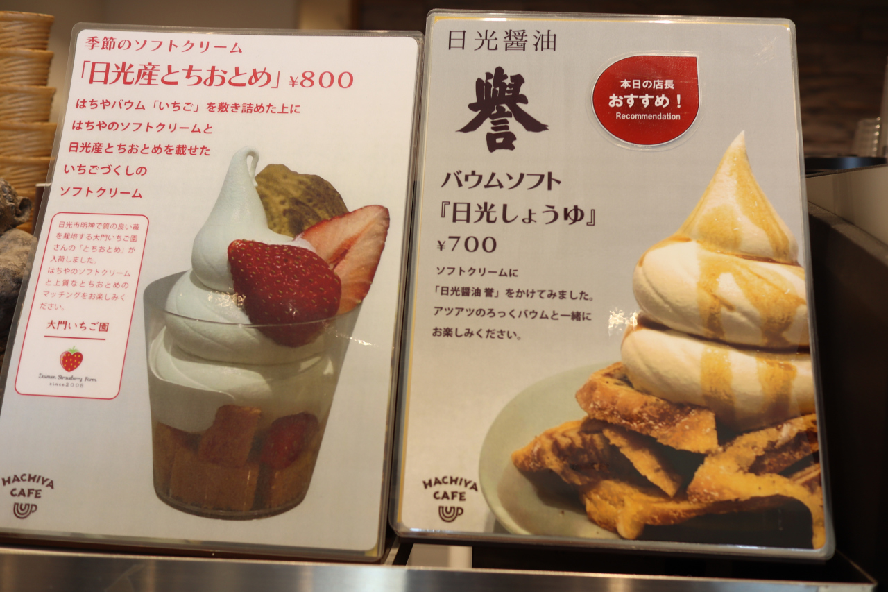 季節のソフトクリーム「日光産とちおとめ」が800円、バウムソフト「日光醤油」700円など決してコスパが良いとは言えない感じがしましたが、電車で長時間移動して到着した後の疲れた体に染み渡るソフトクリームのお味は良かったです。- 旅行時期