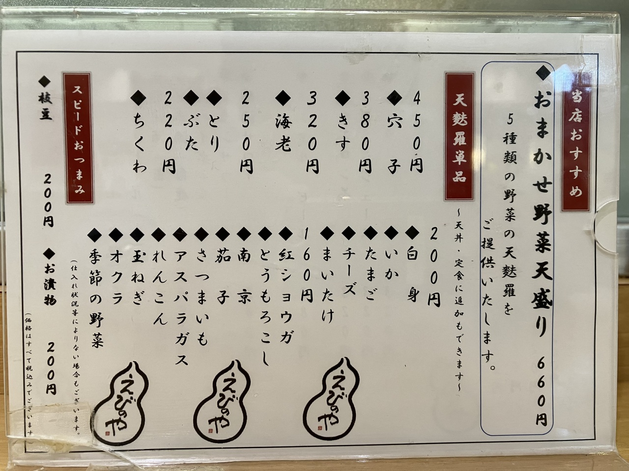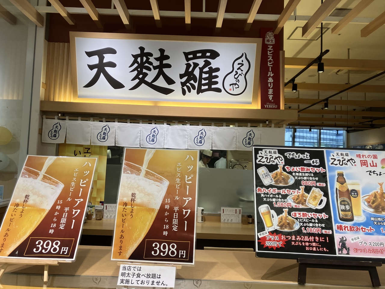 天婦羅えびのやは関西エリアに展開しているイメージですが、川崎ルフロンにもあったと思いますし、岡山にもありましたので入店してみました。