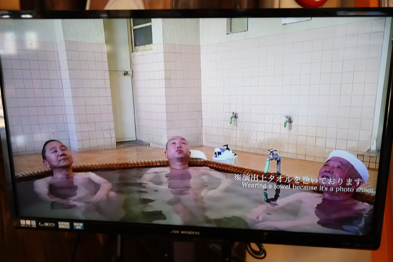浴槽の湯船に浸かると結構な温度と思っていたところ、係りの方がお湯の温度を測りにいらして「ただいまの温度は43.8度でございます」と発表してくださいました。早朝から地元のご高齢の方がたくさんいらしていました。
