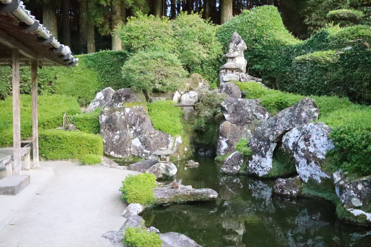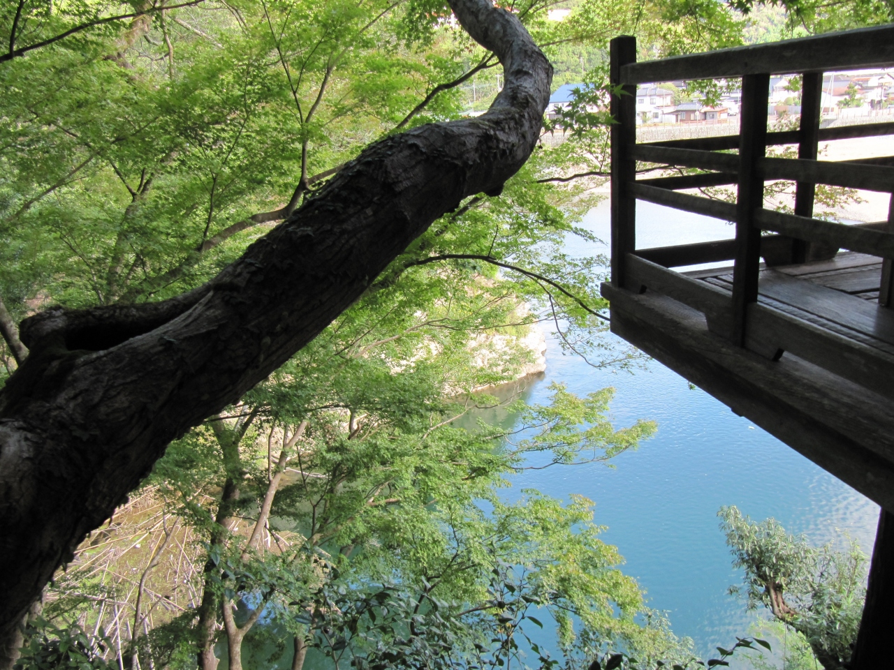 また、手入れの行き届いた庭園も見ごたえあります。庭園の先の突き当りにある不老庵の下には肱川が流れています。不老庵は崖の上に立ち肱川に向いて突き出ています。国の重要文化財です。- 旅行時期