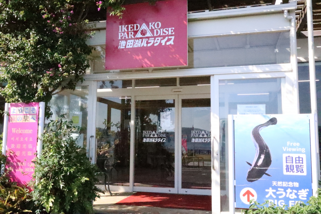 指宿・知覧定期観光バスのルートで寄りました。バスは鹿児島市内天文館から鹿児島中央駅を経由して一路指宿へ。指宿いわさきホテルに隣接する岩崎美術館、続いて長崎鼻、開聞岳で昼食後、知覧に向けて移動する間に池田湖畔の池田湖パラダイスというドライブインで小休憩となります。