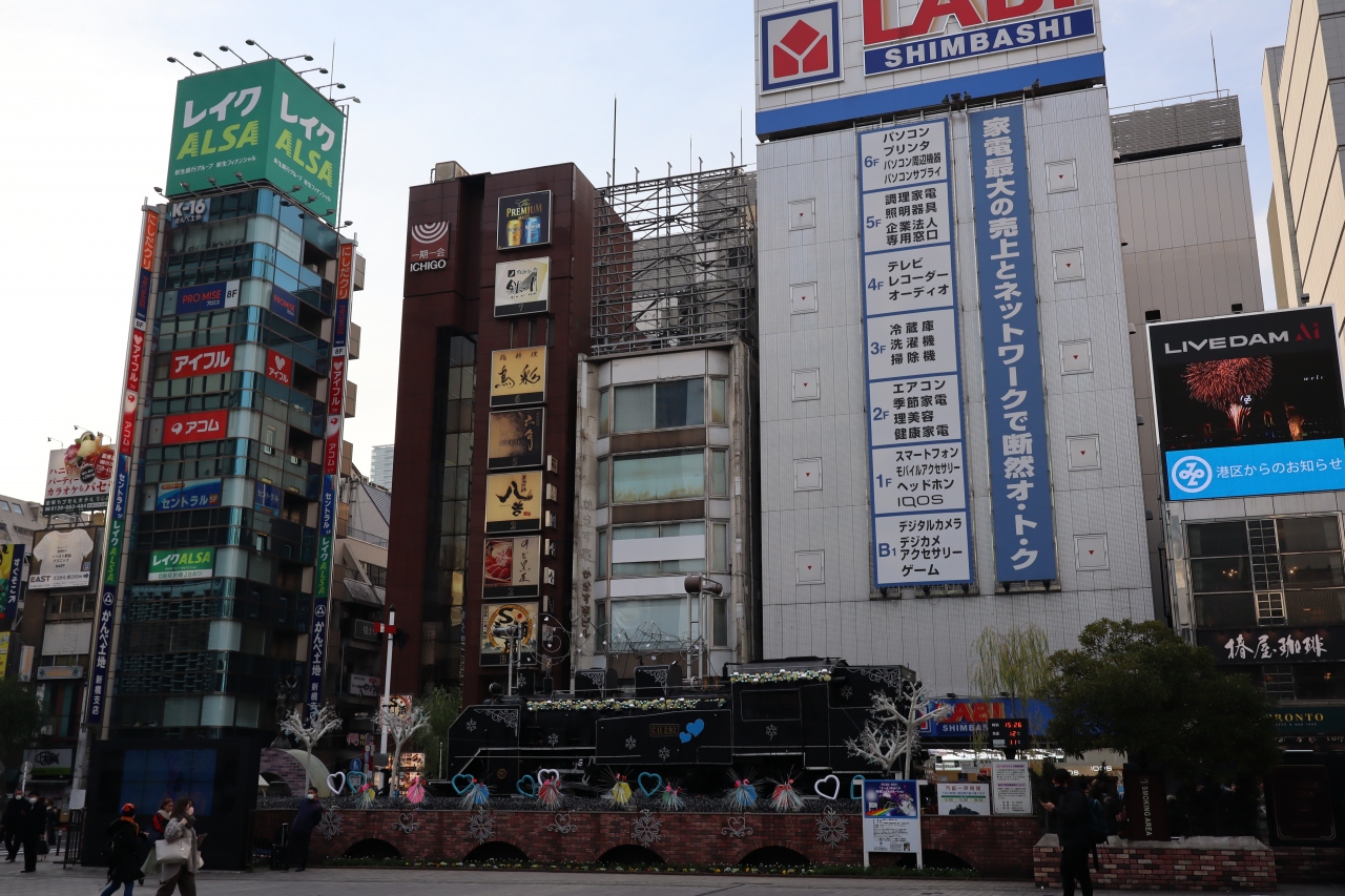 JR新橋駅の日比谷口に広がるSL広場はいつも多くのサラリーマンが行き交うのですが12月29日は閑散としていました。すでに仕事納めの方も多いのでしょう。西新橋商店街では国や東京都の指針である営業時短の影響でしょうか、昼間から吞んでいる方々も多く見かけました。
