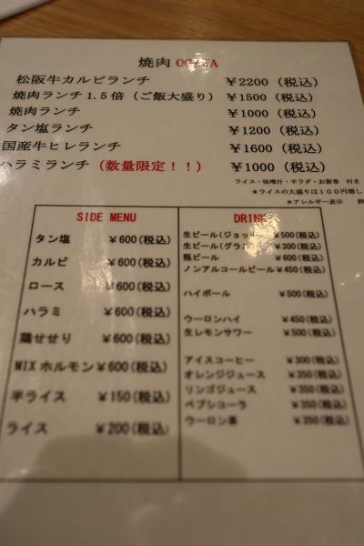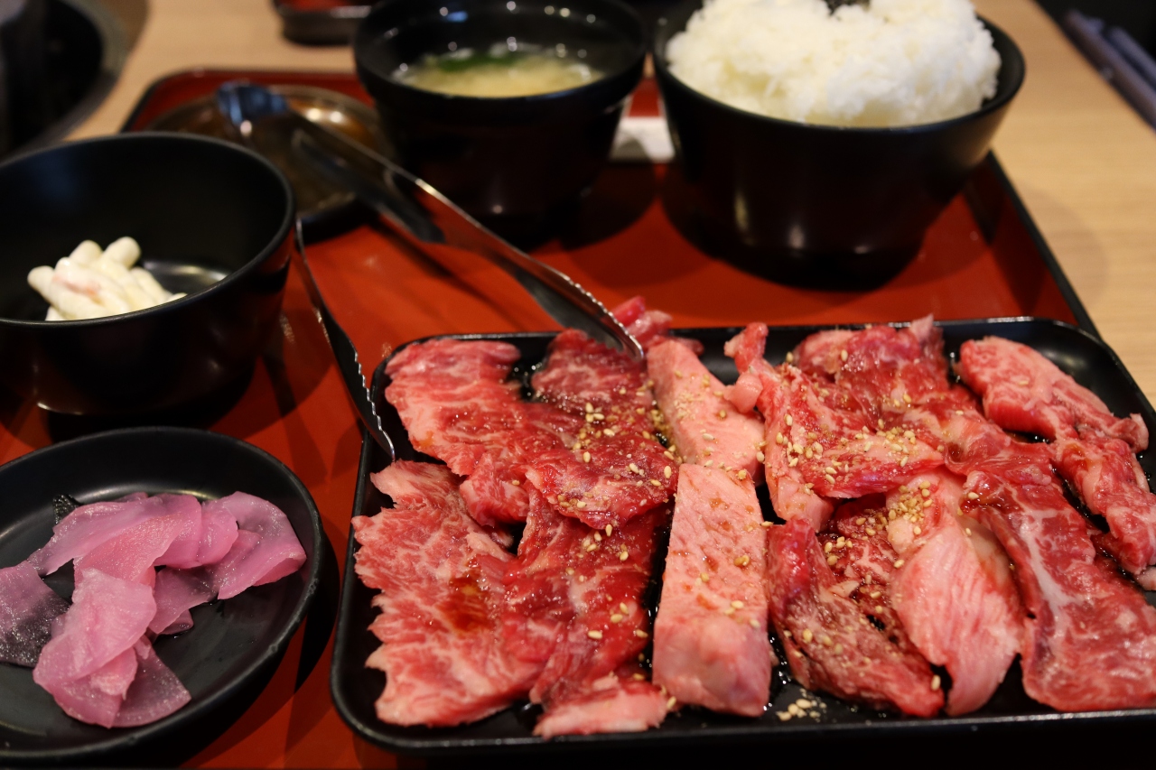 JR大森駅東口から徒歩5分、イトーヨーカドー大森店と複合施設大森ベルポートの信号交差点の角っこの3階になります。牛の絵の看板が目印です。ランチタイムに複数人で行き、松阪牛カルビランチ2,200円、焼肉ランチ1.5倍(ご飯大盛り)1,500円、ハラミランチ1,000円をオーダーしてシェアしました。とてもリーズナブルで良いと思います。