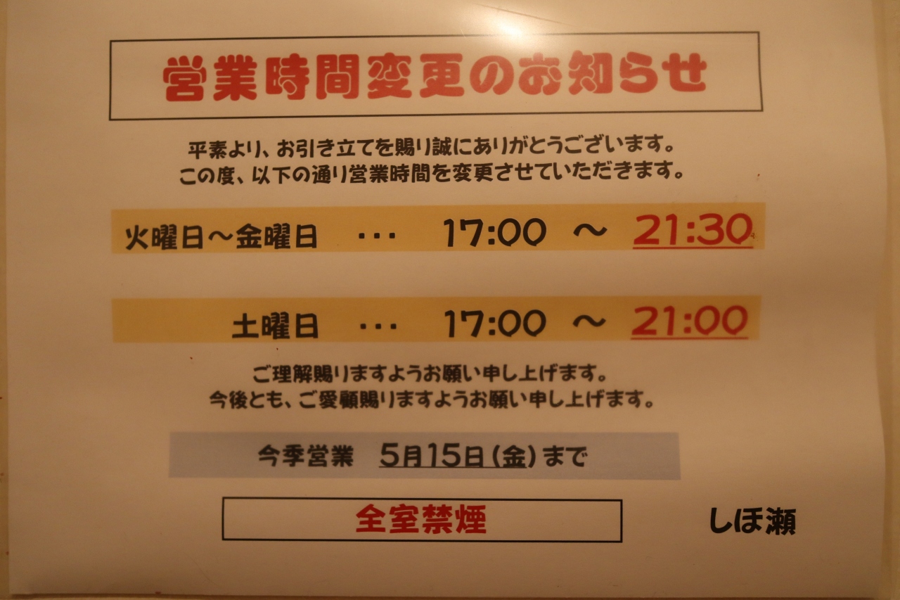 場所は東京メトロ丸の内線の四谷三丁目駅で下車して、新宿通りを車力門通りから150mほど入った右側になります。冬季のみ営業で今季は2021年5月15日までです。日曜・月曜定休日で営業時間は17:00からです。