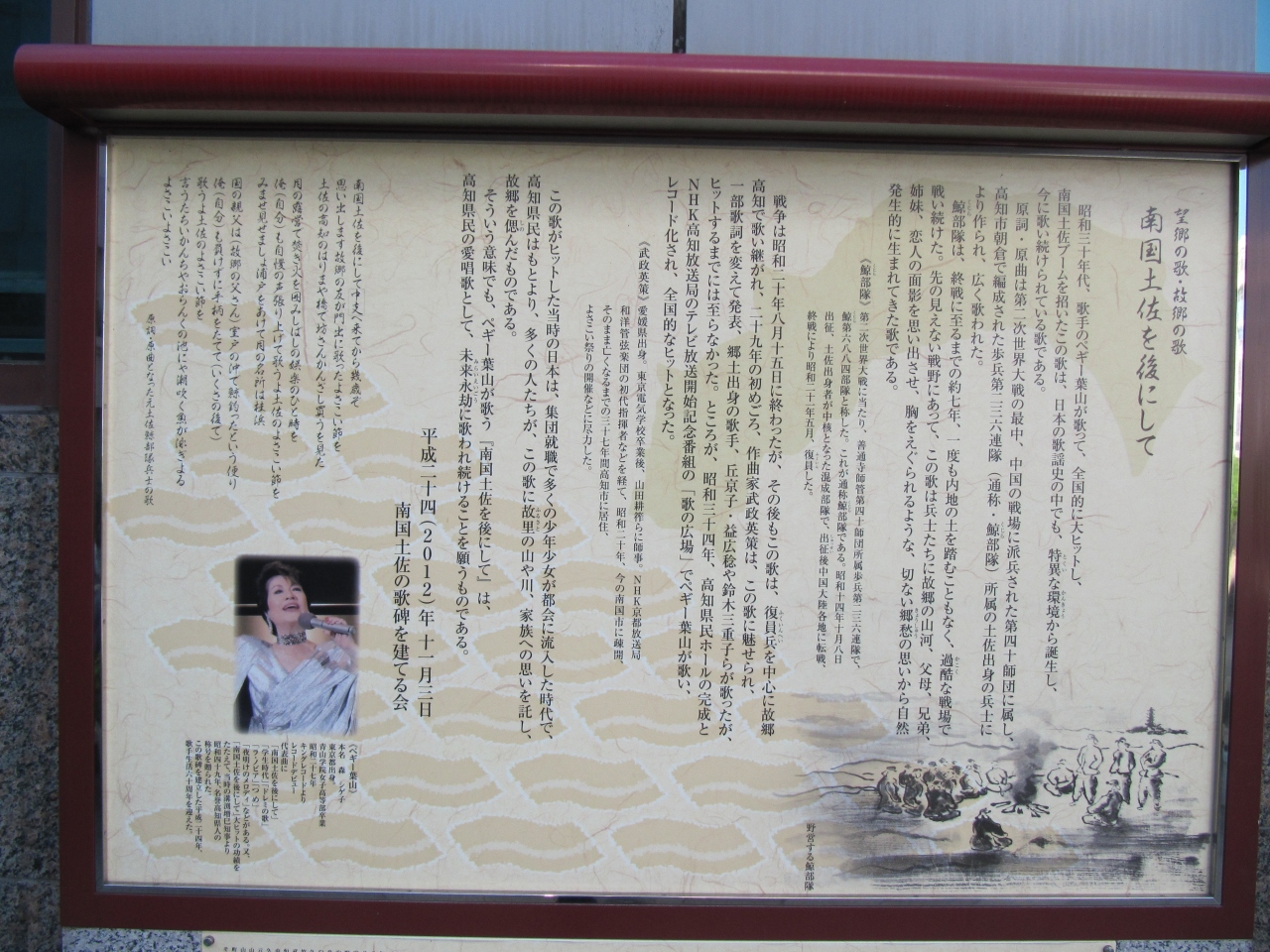 また、その前面道路の向かいにもうひとつ水色のはりまや橋がありますので合わせてご確認ください。こちらは明治から大正時代に実際に使用されてきた歴史ある橋で、クジラのオブジェとペギー葉山の「南国土佐を後にして」の歌詞が刻まれたものがあります。そちら側のローソン横からは長距離都市を結ぶ高速バス、及び路線バスの停留所があります。桂浜観光へもこちらから30分~40分くらいで行けます。- 旅行時期