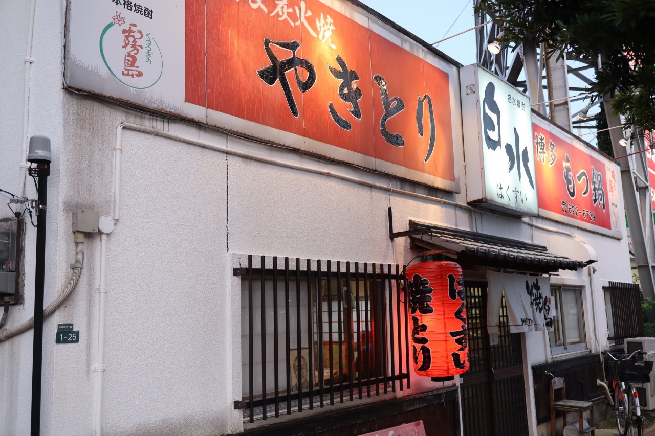 福岡空港からの夜のフライトの場合、大体いつもチェックインを済ませて一旦空港外の焼鳥白水へ行って時間調整します。空港まで徒歩30秒の好立地にも関わらず、いつも地元の方々で賑わう名店です。