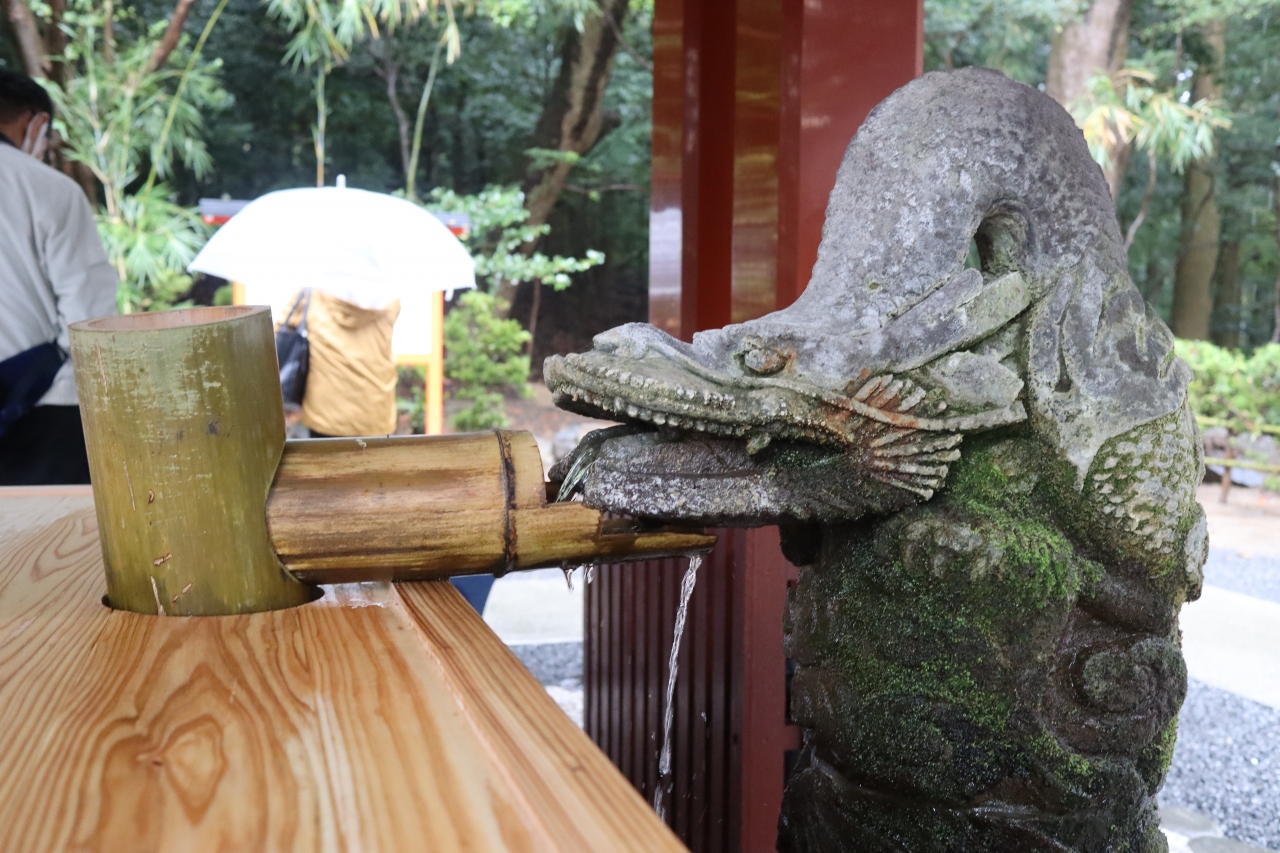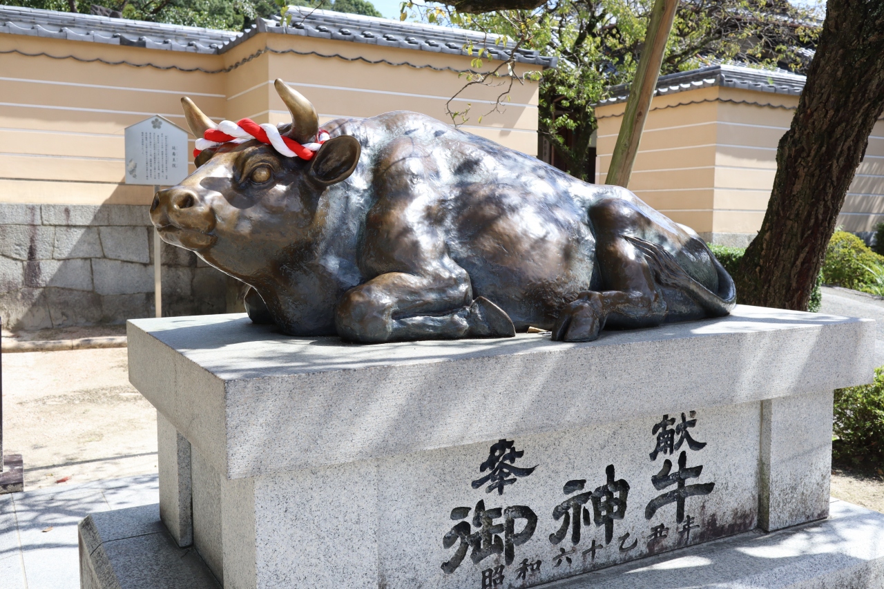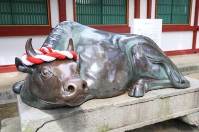 出雲大社は「いなばの白うさぎ」神話でも有名で、手水舎の近くに大国主命(おおくにぬしのみこと)とうさぎが見つめ合っている像があります。銅鳥居の近くには神馬神牛が鎮座しています。来年の干支の神牛を撫でてよい年をお迎えください。- 旅行時期
