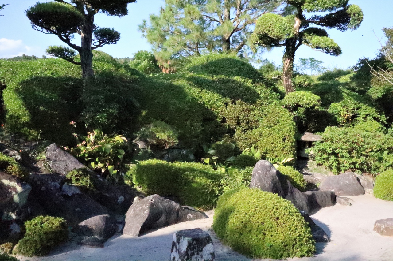 天文館から「指宿・知覧行き定期観光バス」に乗り、一日中連れ回して貰う楽ちんなバス旅の最後に寄る観光スポットです。ここは、バスガイドさんが水先案内人となりガイドしながら幾つかの庭園を訪問します。なお、最後のバス待機所のところまで所要30分~40分の間、途中にお手洗いはありませんのでご注意ください。