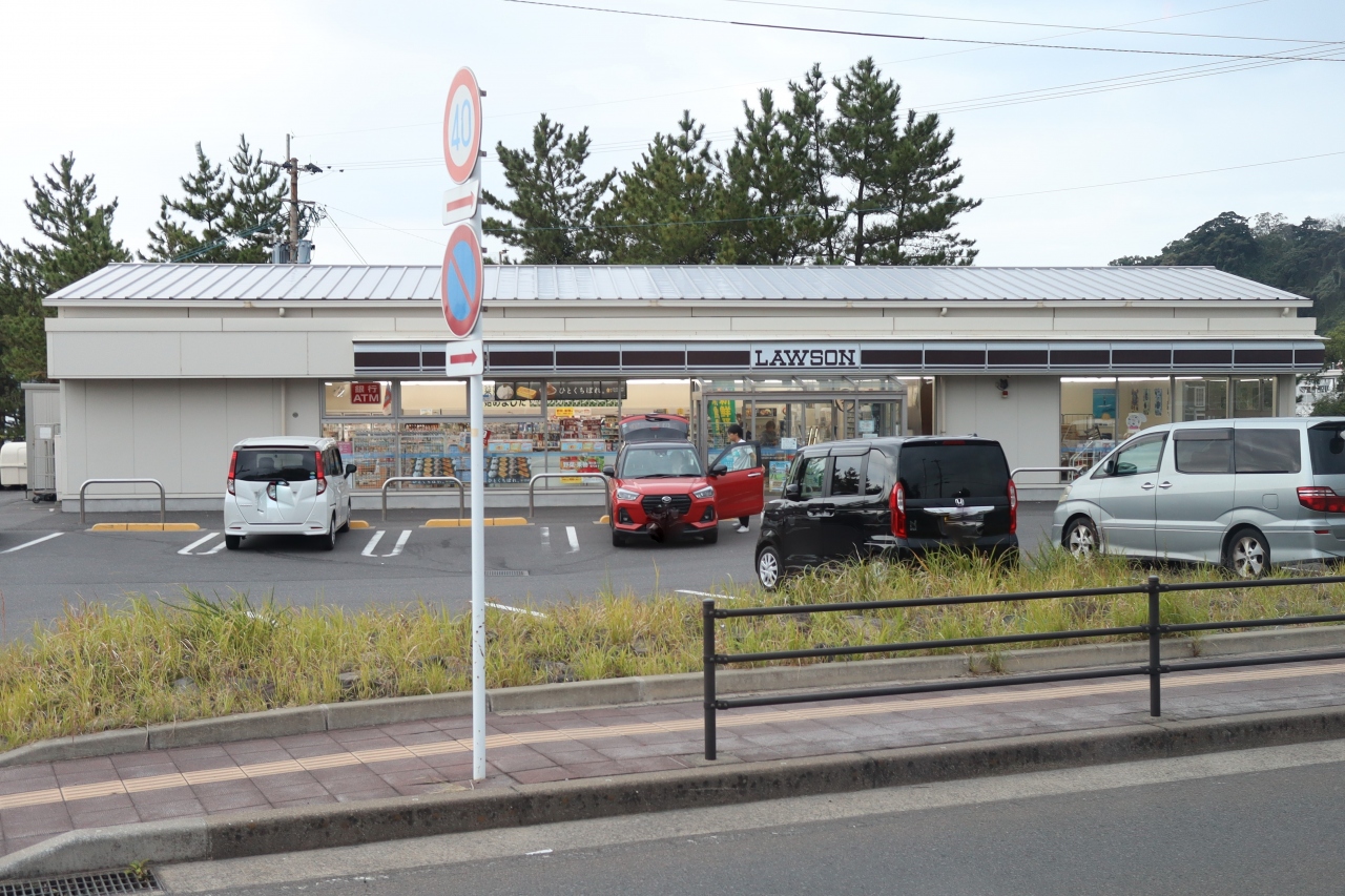 出発後まもなく、ローソンとファミマがありますが、企業ブランド色と異なり桜島イメージの茶色に統一されていました。運転手さん曰く「チャイローソン、チャミマと呼んでいます」とのこと。長渕剛の叫びの像の前では減速していただけました。