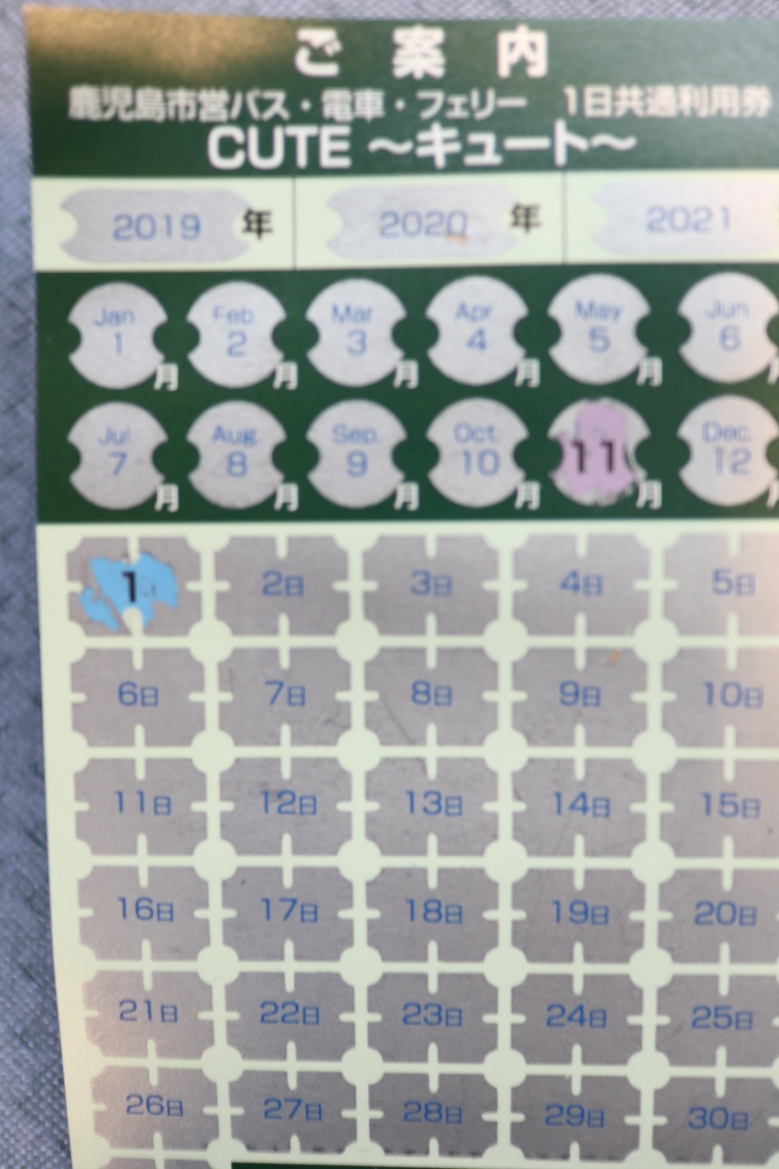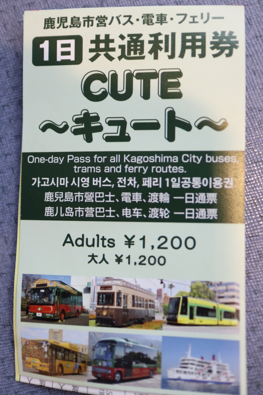 この日、鹿児島中央駅の総合案内所でキュートという一日乗車券を買っていたので、桜島フェリー往復運賃、及びサクラジマアイランドビューバスは乗り放題でした。キュートは通常1,200円(訪れた11月は1,000円でした)で鹿児島市内を走る観光バスや一部の路線バスが乗り放題ととてもお得です。- 旅行時期