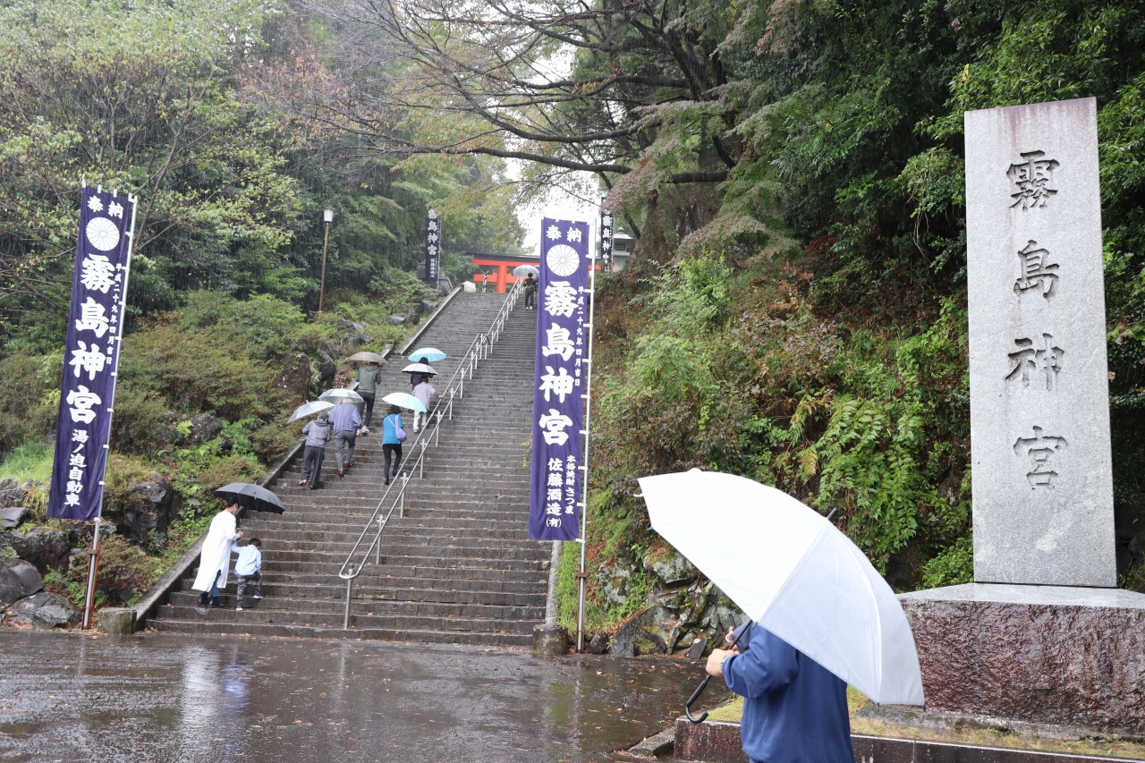 往路は特急きりしま6号で鹿児島中央駅8:49発→霧島神宮駅9:36着、そこから鹿児島交通の路線バス9:51発→霧島神宮10:04着。