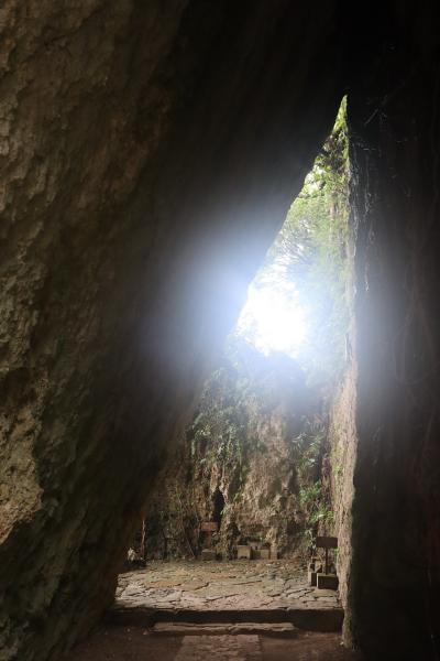 御獄(うたき)とは「聖地」、斎場御嶽(せいふぁ~うたき)は琉球王国最高の聖地です。御獄の中には六つのイビ(神域)があり、中でも大庫理(ウフグーイ)、寄満(ユインチ)、三庫理(サングーイ)は、首里城内にある部屋と同じ名前で、当時の首里城と斎場御嶽の深い関わりを示しています。