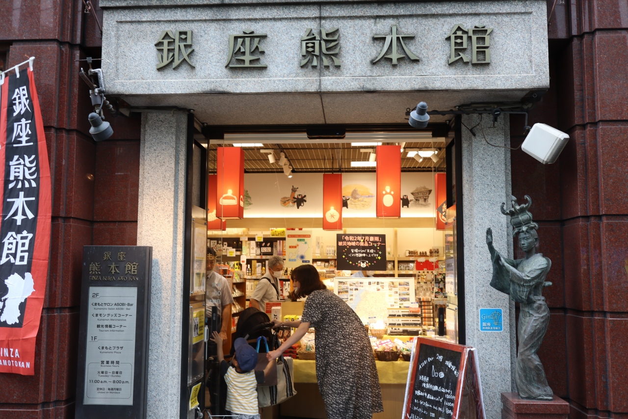 有楽町駅前の東京交通会館、及びその周辺の銀座界隈には全国都道府県のアンテナショップがひしめきます。銀座5丁目、数寄屋橋交差点の近くといいますか、不二家ビル交差点から銀座4丁目に向かう途中に「銀座熊本館」があります。