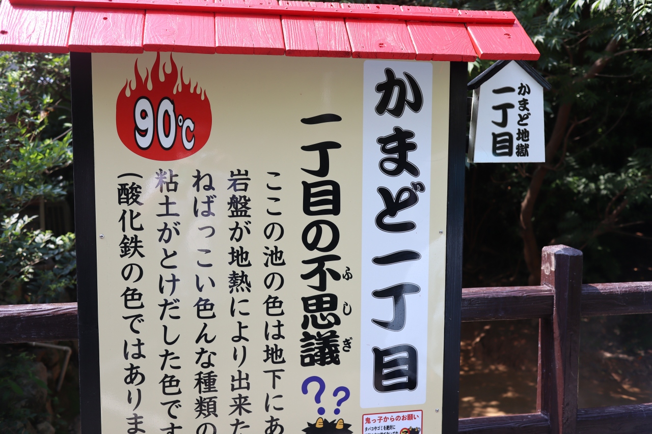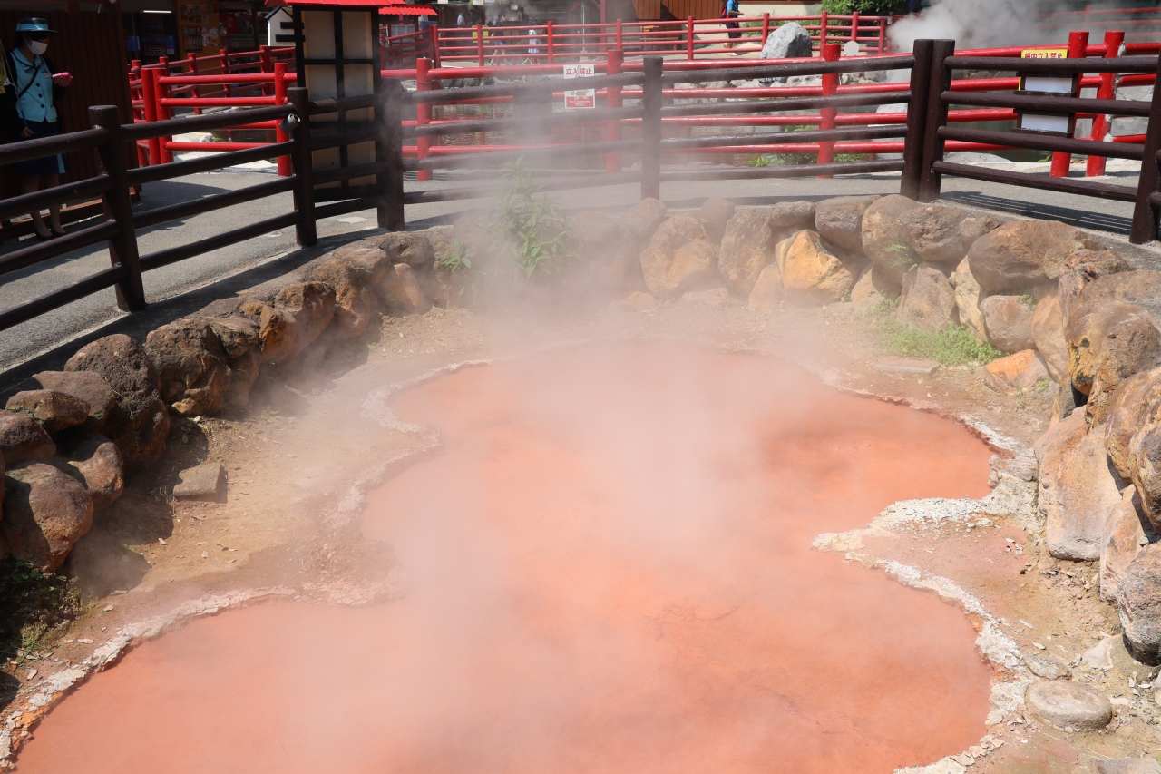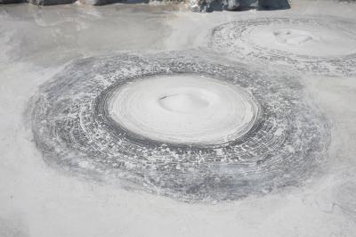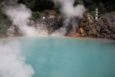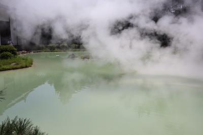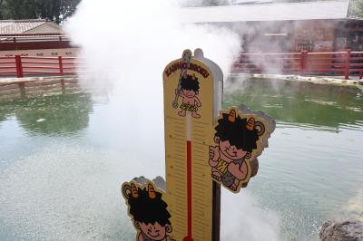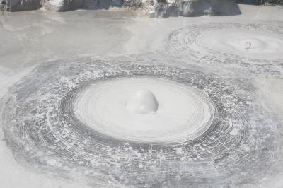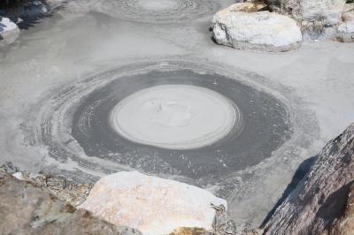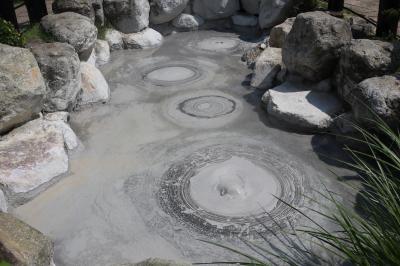 鬼石坊主地獄は別府の鉄輪(かんなわ)というところにあります。「海地獄」のお隣です。美人のガイドさんによりますと「昔は広くひと続きだったのが、現在は数ヵ所に分かれて灰色の熱泥群となっております。個人所有の土地なので、より観光用に変化しています」とのことでした。灰色の熱泥がボコボコ沸騰する様子が坊主頭に似ています。泉温は99度あって決して触ることはできません。- 旅行時期