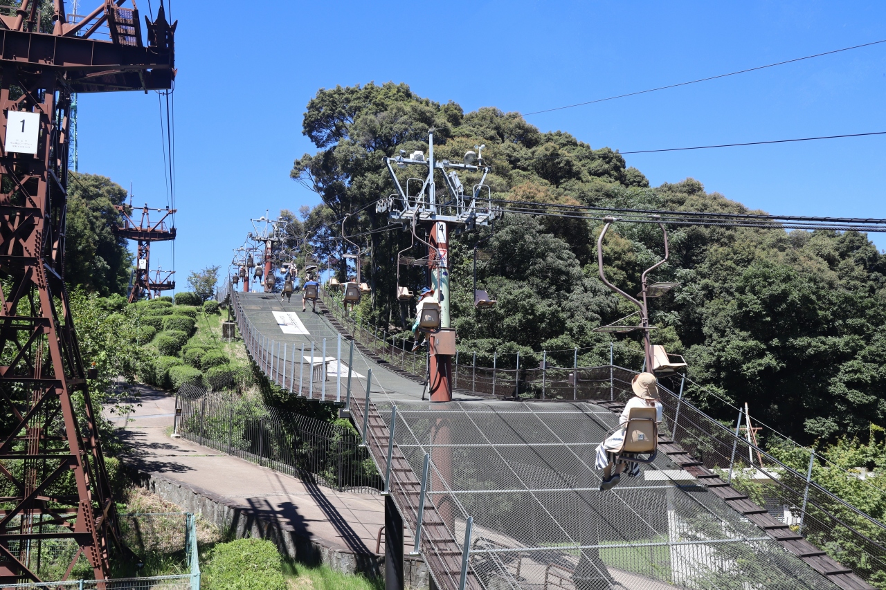 ロープウェイは10分間隔、待てない方は隣接するリフトを利用してください。ただ、直射日光にさらされます。中には日傘をさしてリフトに乗っている人もいて…(笑)。
