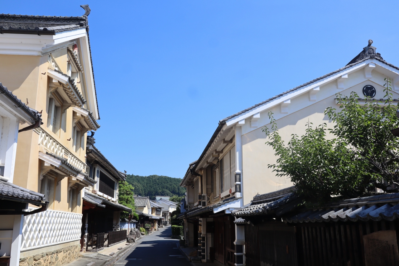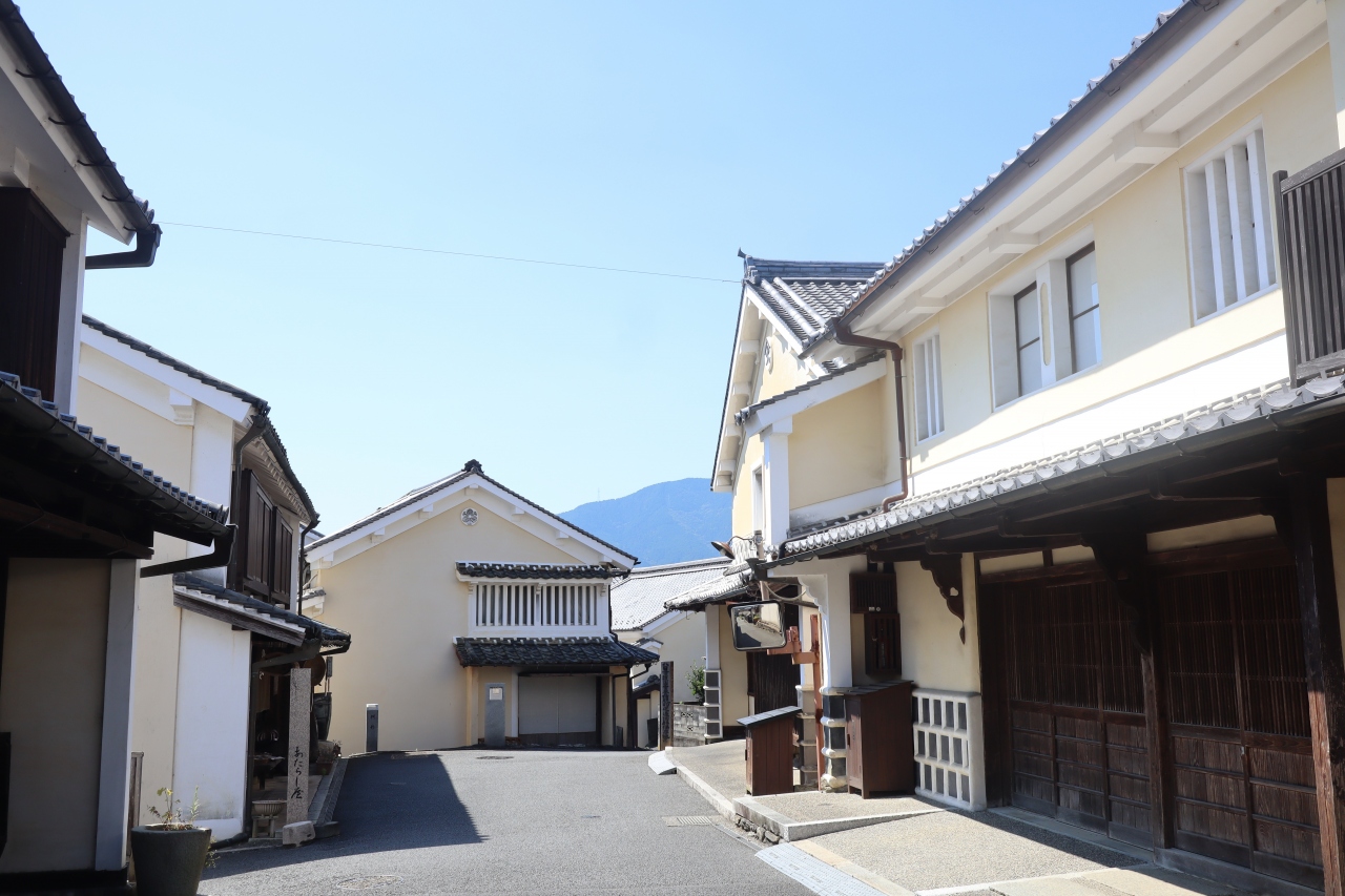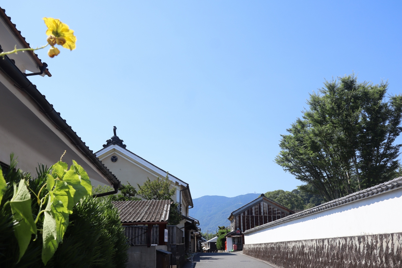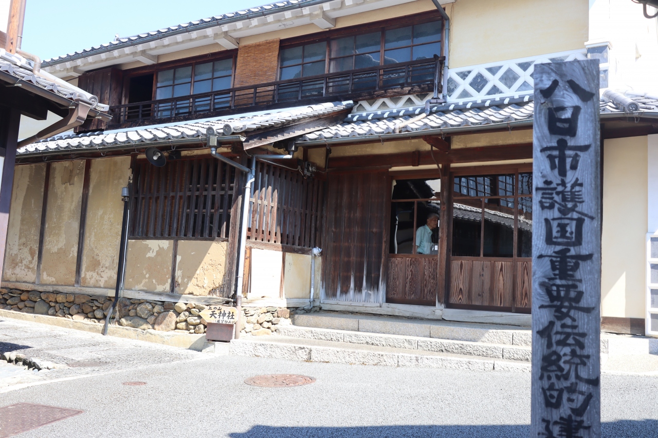 松山から特急で内子まで25分、内子座が近い目抜き通りを伊予銀行内子支店の交差点で左に曲がり、なだらかな坂道を上っていくと八日市護国の町並みです。