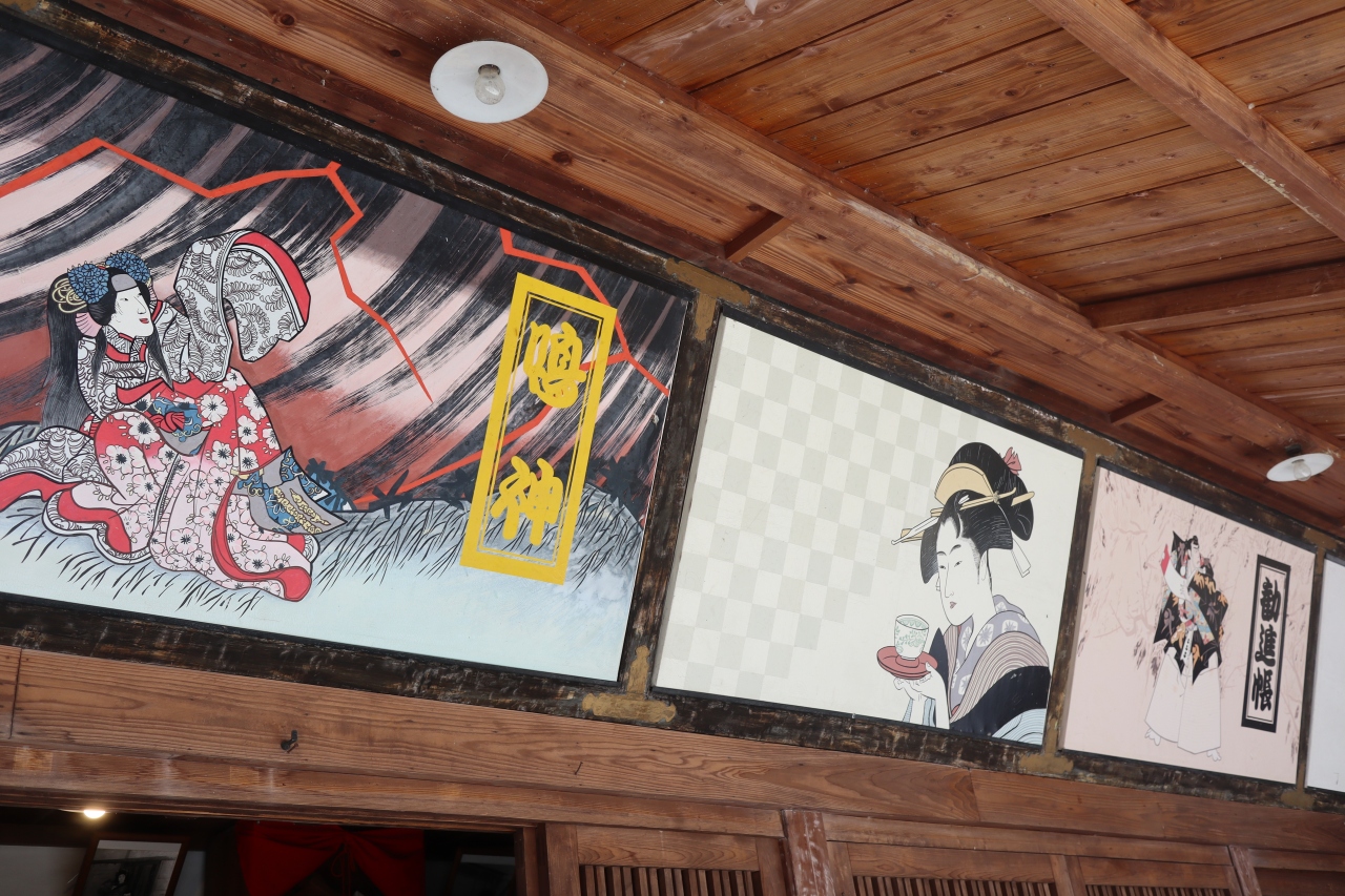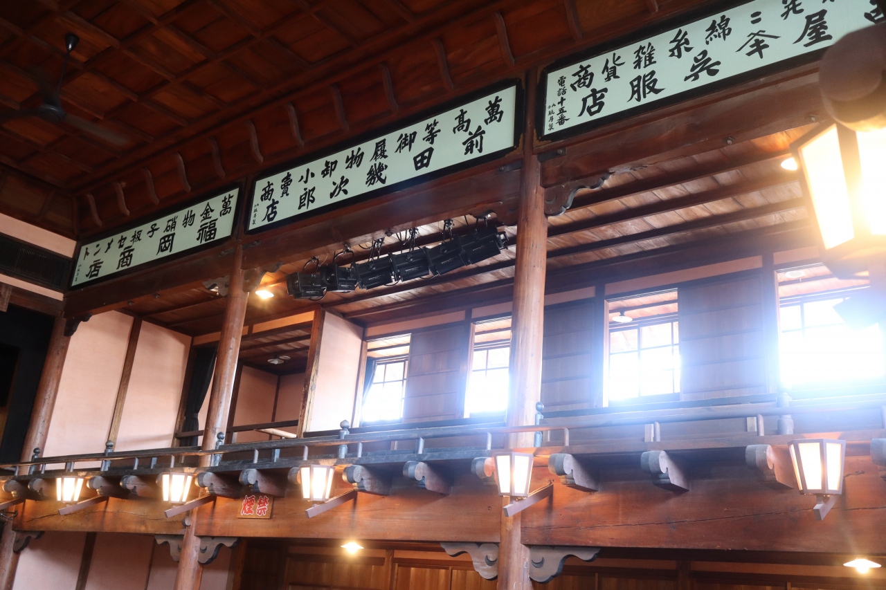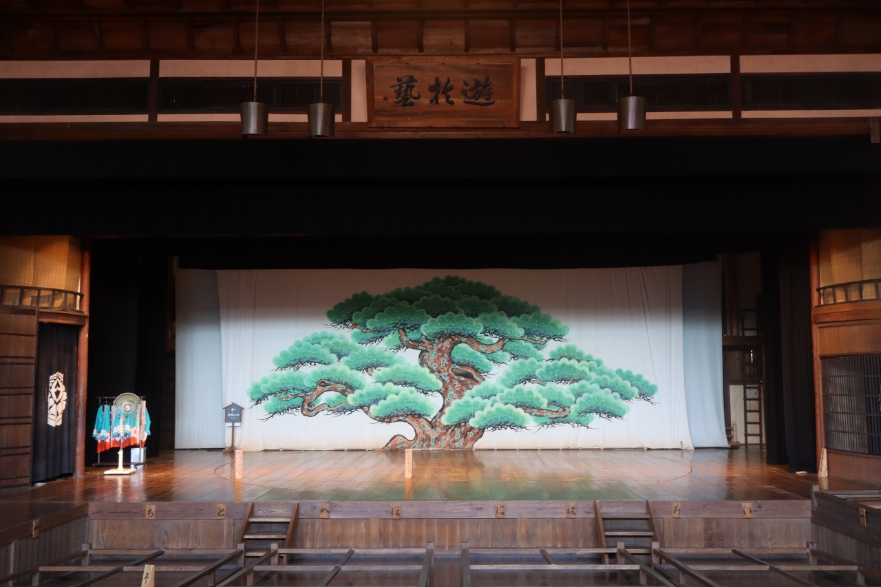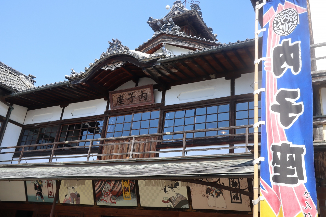 内子座はJR内子駅から徒歩圏内。2020年8月現在、入館400円です。係の方が内部の説明をしてくださいます。廻り舞台、「すっぽん」「せり」など舞台仕掛けがありました。建物2階の擦りガラスは大正時代からのものということで歴史を感じます。係の方のご説明によると、有名な歌舞伎役者もここに来ているらしいです。